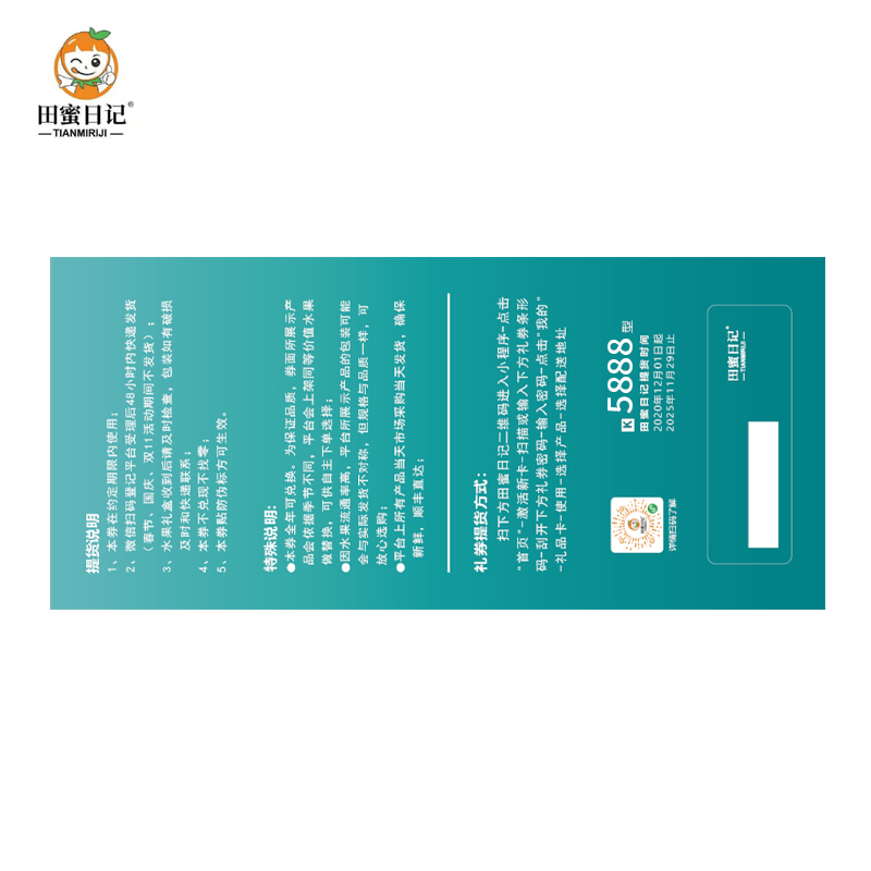 田蜜日记专业给各综合性平台、礼品公司、卡册公司等渠道提供全年水果一件代发及节假日项目集采业务,目前已对接了如:得力、史泰博、齐心等三百多个平台及渠道,整年水果单品丰富,可开专票、可授权、提供京东比价链接、提供主图详情页,同时发行全国通用,全年可自由兑换的田蜜日记水果提货券,全国免费配送到家,长期有效,售后全包