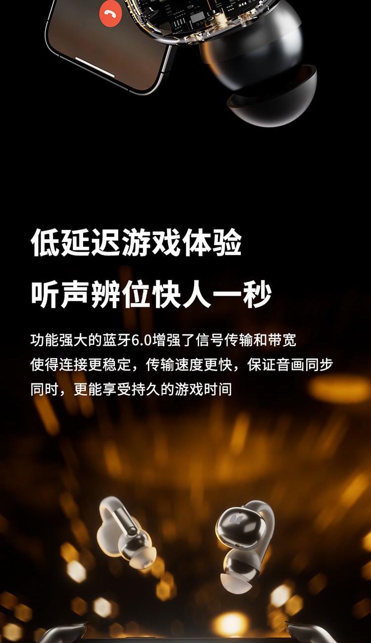 • 轻薄的耳帽设计,贴耳不胀耳,音质输出提升2倍、高音清晰,低音澎湃,