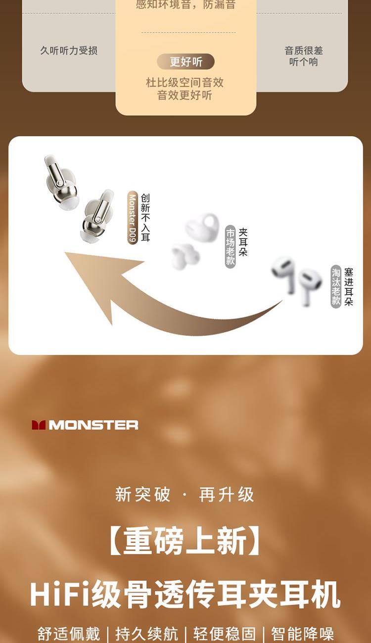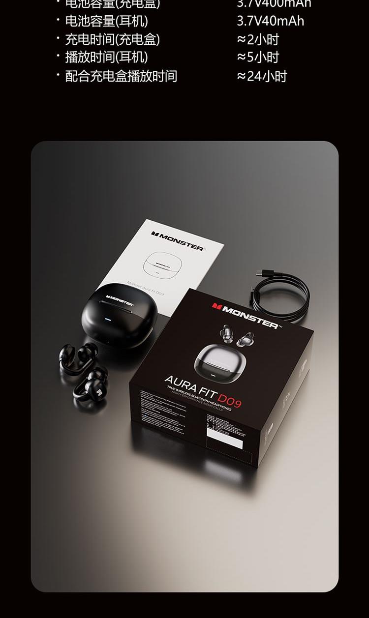 魔声(MONSTER)耳夹式无线蓝牙耳机D09