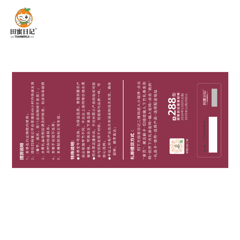 田蜜日记专业给各综合性平台、礼品公司、卡册公司等渠道提供全年水果一件代发及节假日项目集采业务,目前已对接了如:得力、史泰博、齐心等三百多个平台及渠道,整年水果单品丰富,可开专票、可授权、提供京东比价链接、提供主图详情页,同时发行全国通用,全年可自由兑换的田蜜日记水果提货券,全国免费配送到家,长期有效,售后全包