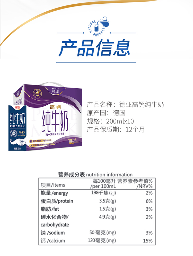 保质期365天 ,德国进口纯牛奶