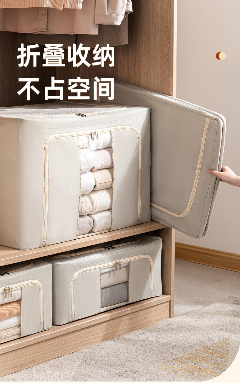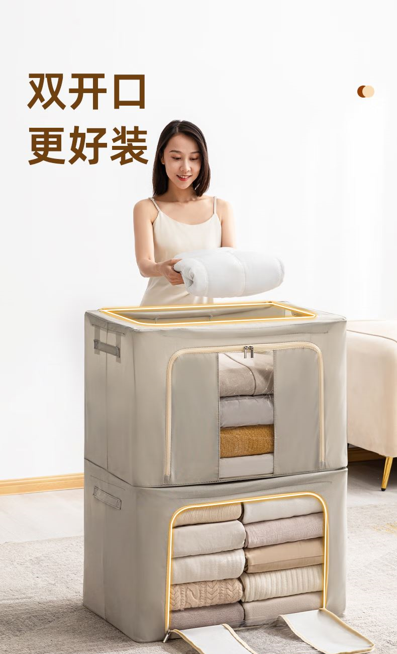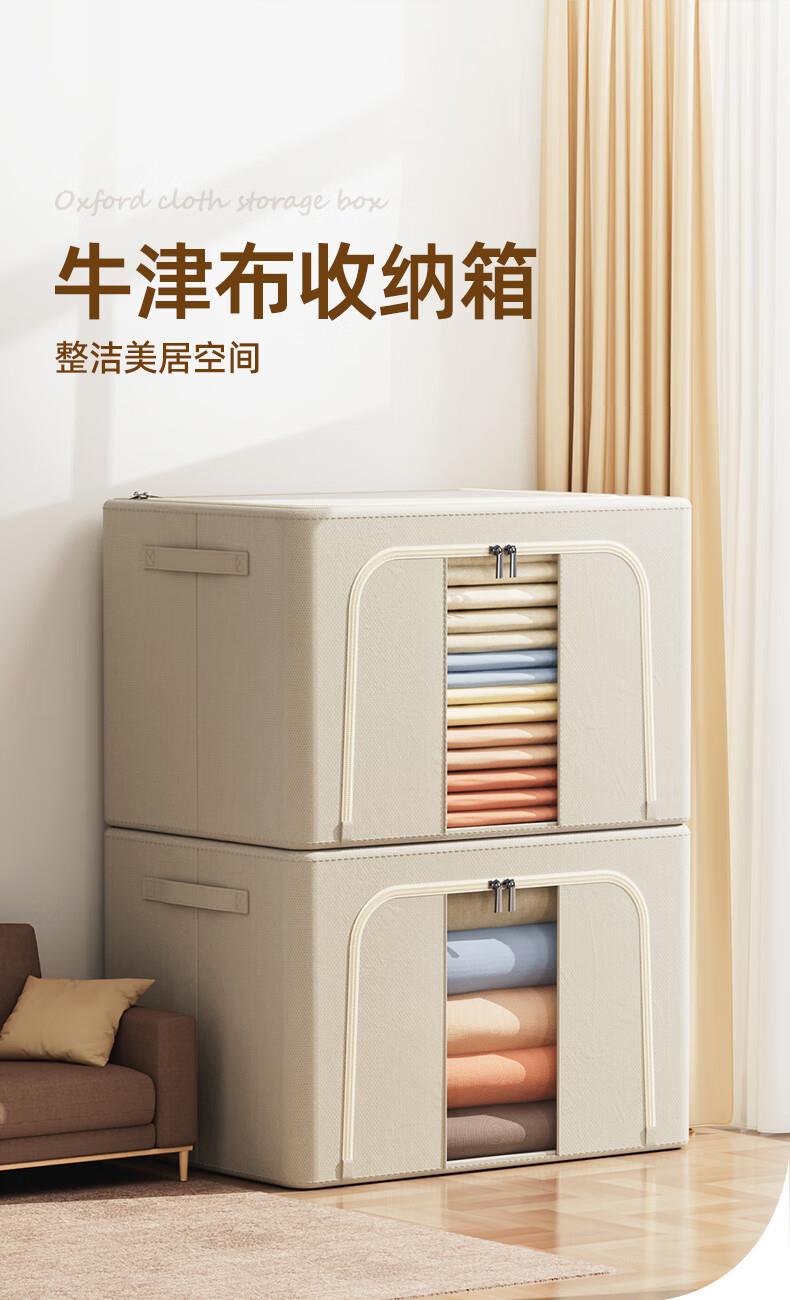 50*40*33cm(1个) 产品尺寸:50*40*33cm(1个) 材质:牛津布 适用对象:衣服,棉被,书籍,玩具 类别:外袋 适用场景:卧室,家居 颜色:宝石蓝,香芋紫,极光粉,米灰色,冬梨色 功能:便携,收纳 产品描述:一箱多用,水洗不变形,叠加稳固
