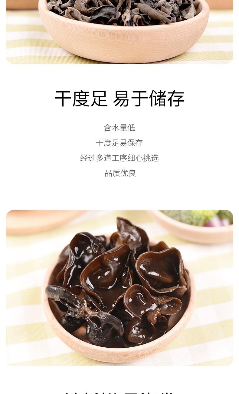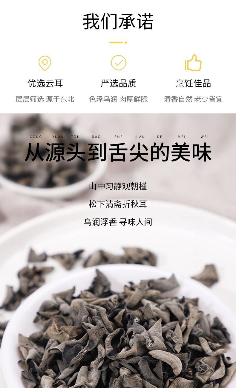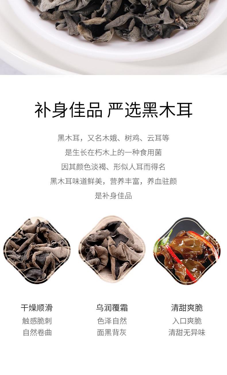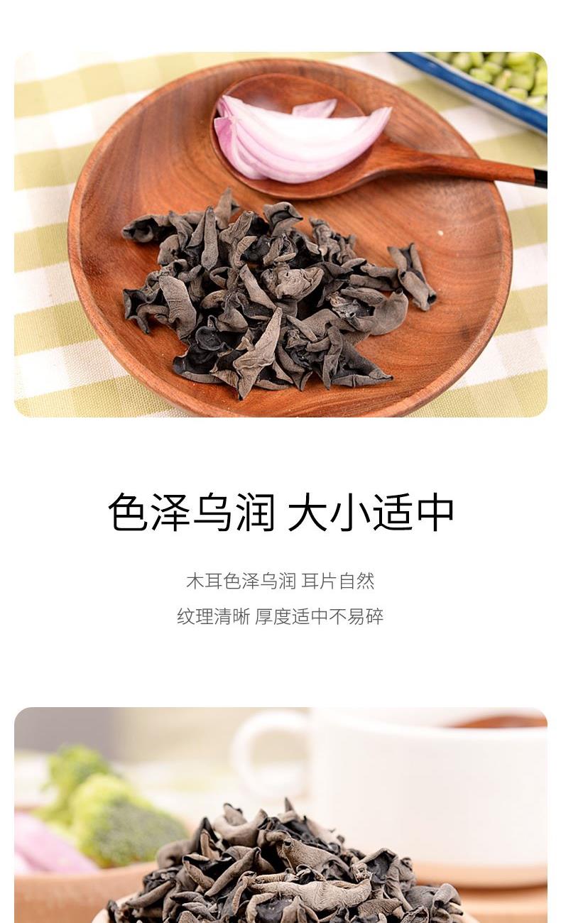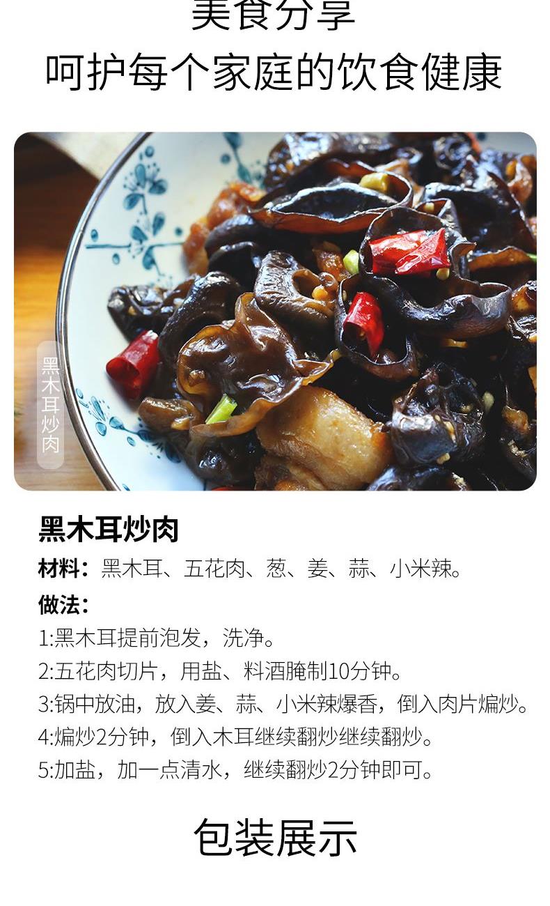 配料:黑木耳 原料产地:黑龙江省牡丹江市 净含量:100克 保质期:12个月 生产日期:见包装物打印处 食用方法:用清水浸软洗净后,可煮、炖、炒、烩等。 精挑细选优质单片黑木耳,其色泽乌黑发亮,耳瓣整体舒展,叶体厚实,涨发性好,其味道清淡微香。