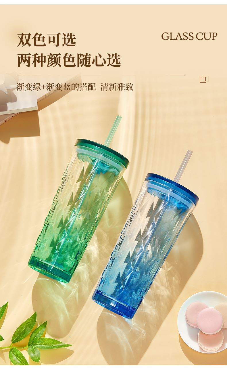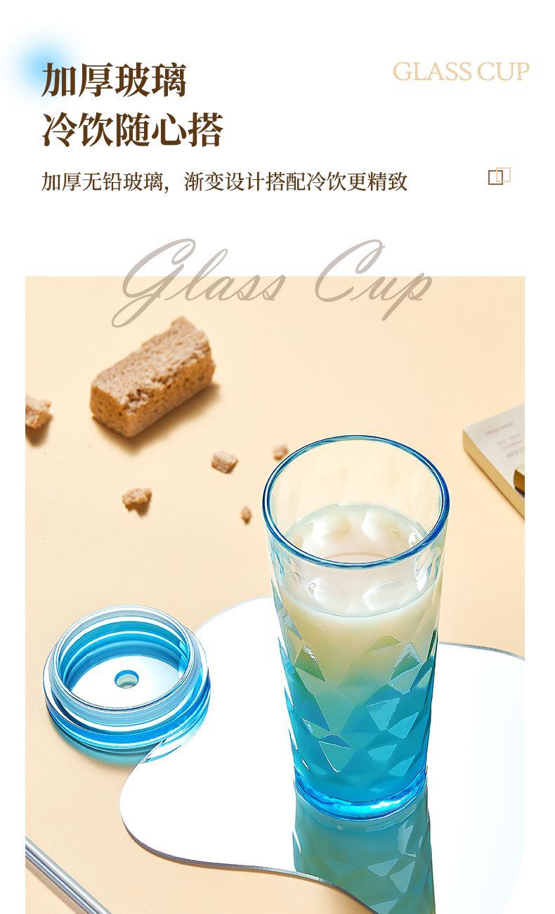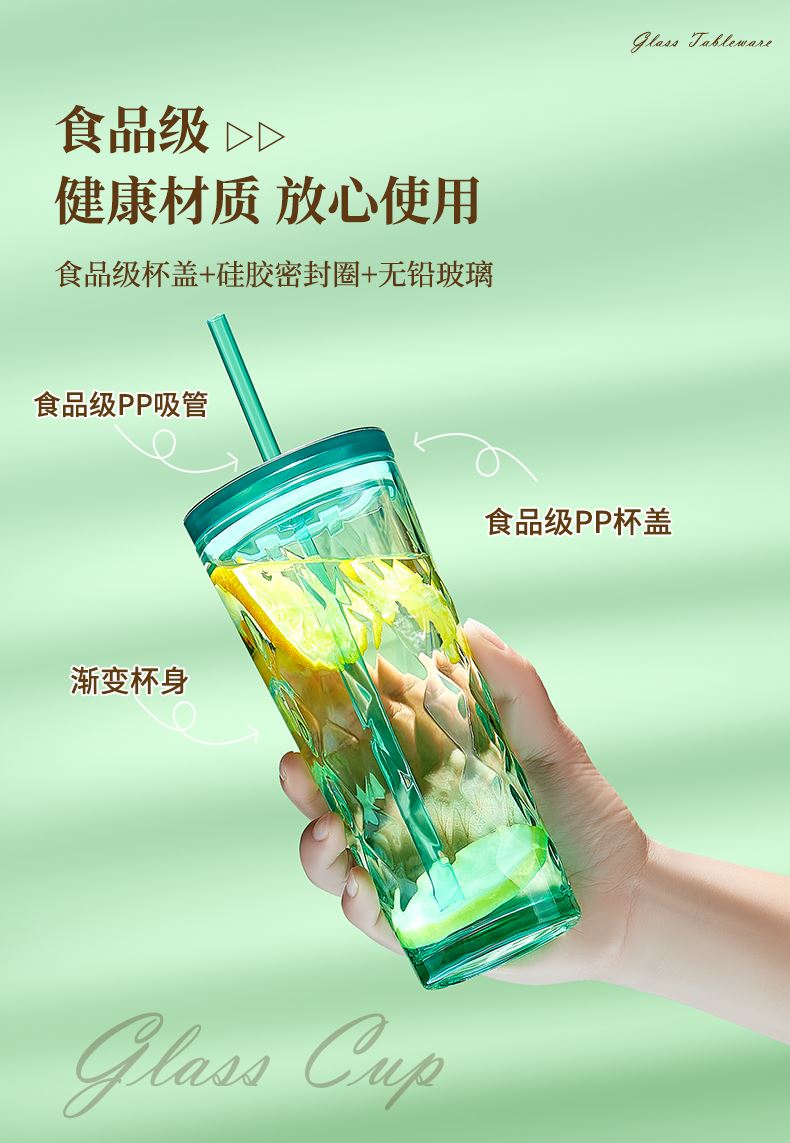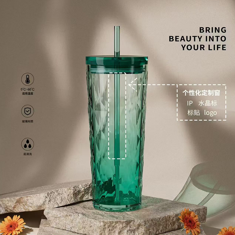 材 质:钠钙玻璃、PS、食品级硅胶、TRITAN 产品参数:水杯460ml*1 彩盒尺寸:83*83*235mm 外箱尺寸:52.2*26.7*18.8cm 全新一代艺术油画风外包装设计,灵感源自自然光影与现代艺术肌理。 采用超白料质打造,远超同类玻璃光泽。加厚玻璃,安全健康,手感细腻。 专为分销客户预留小批量定制窗口。 采用独特菱格切面纹理与渐变通透色彩设计,光影折射出晶莹立体感。