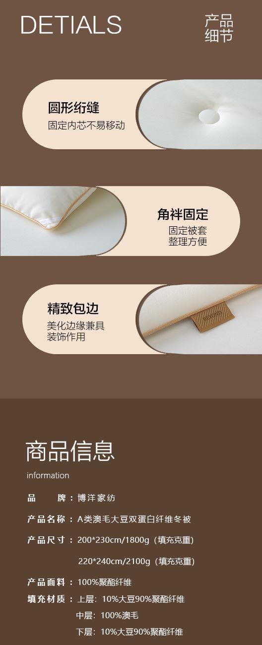 博洋家纺A类澳毛大豆双蛋白纤维冬被
