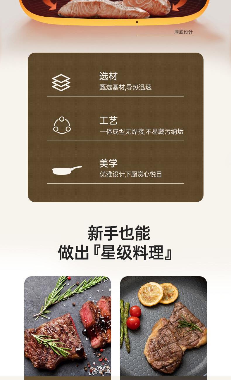 规格:28cm 材质:铝合金 单个尺寸:505*350*115 (28cm) 1、95万次超耐磨不粘 2、五芯一体仿压铸工艺 3、一款含钻的不粘锅 4、军工硬氧强化、耐磨、耐腐蚀、抗酸碱