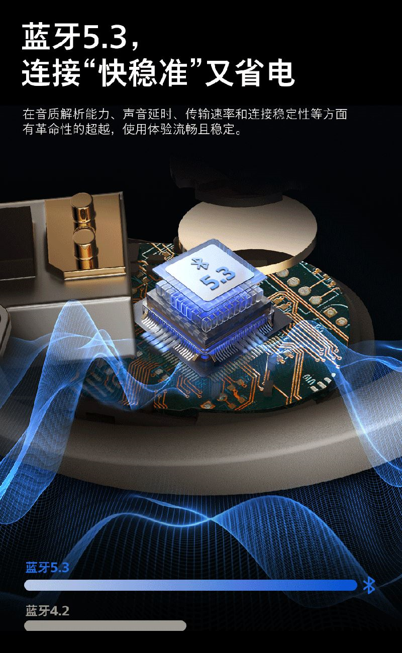4、 升级蓝牙5.4闪连6.0技术,0.004秒无感延迟无损传输;