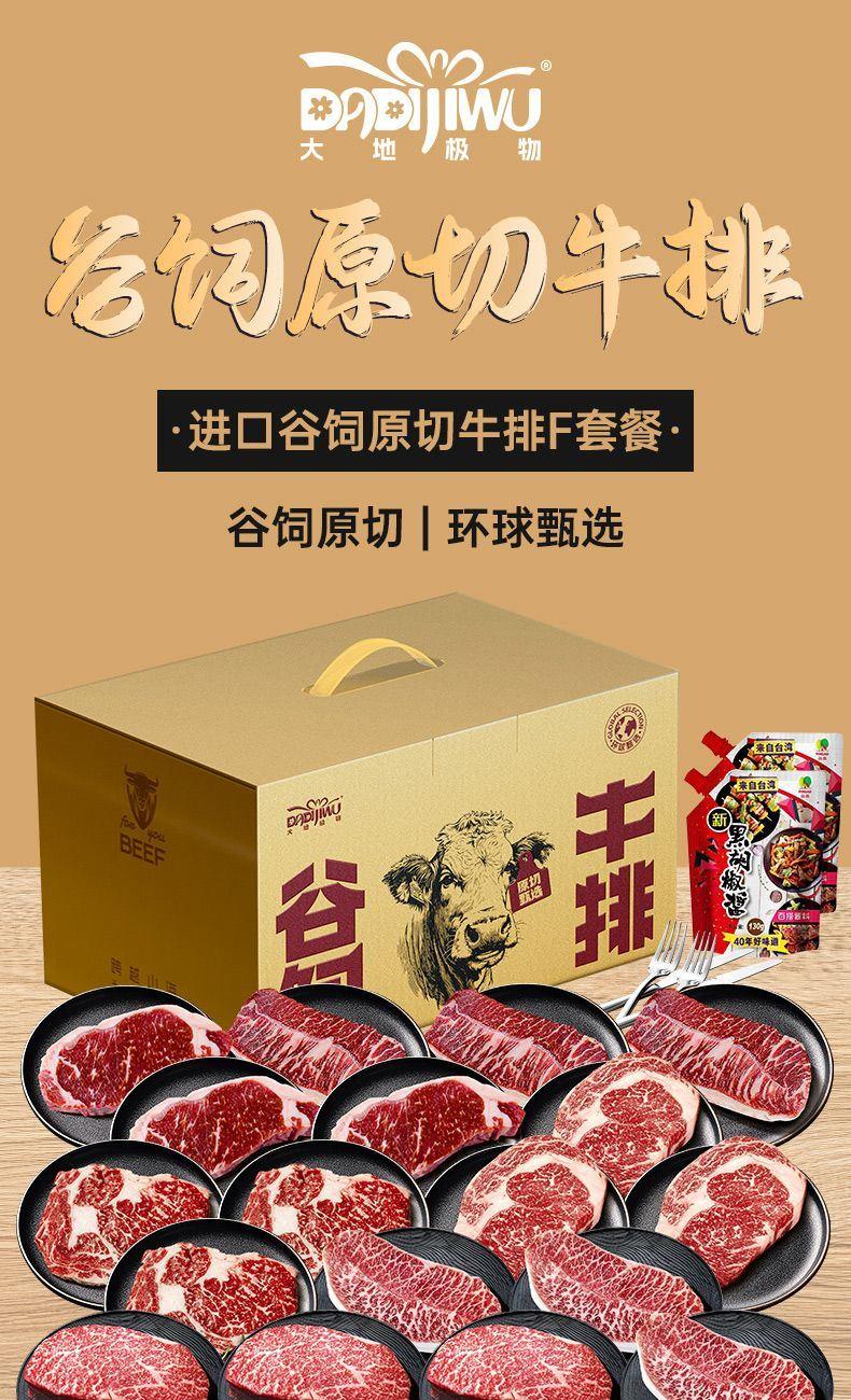 「大地极物甄选」进口谷饲原切牛排2998型F套餐