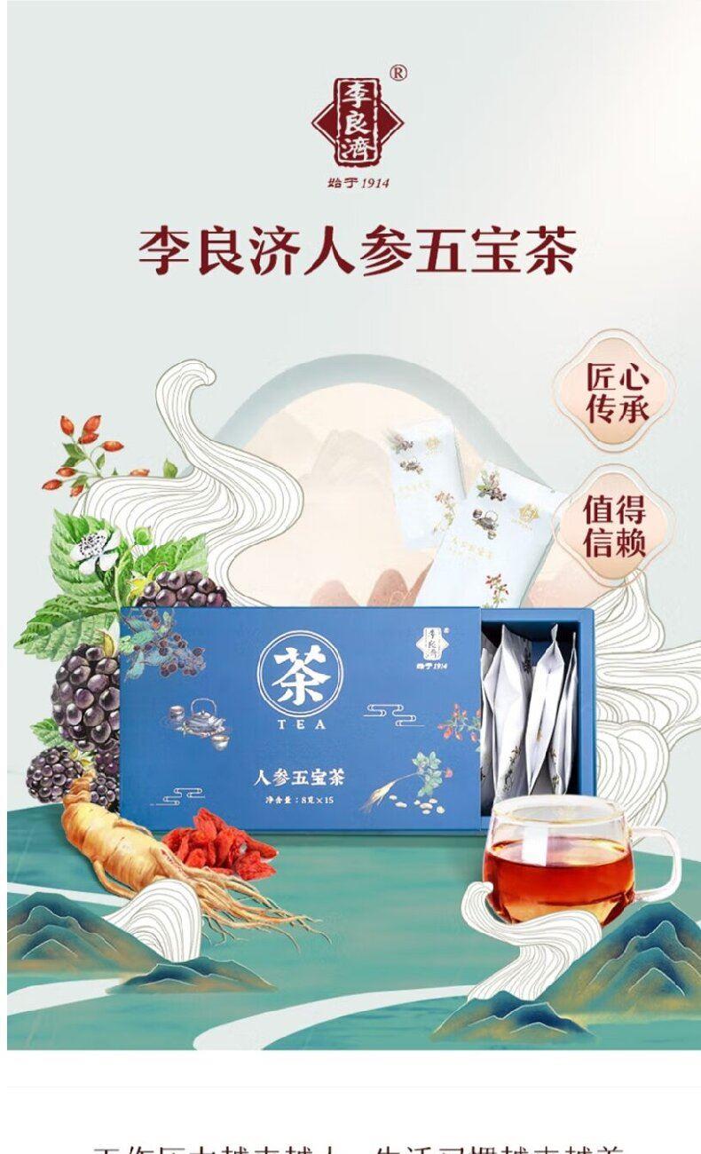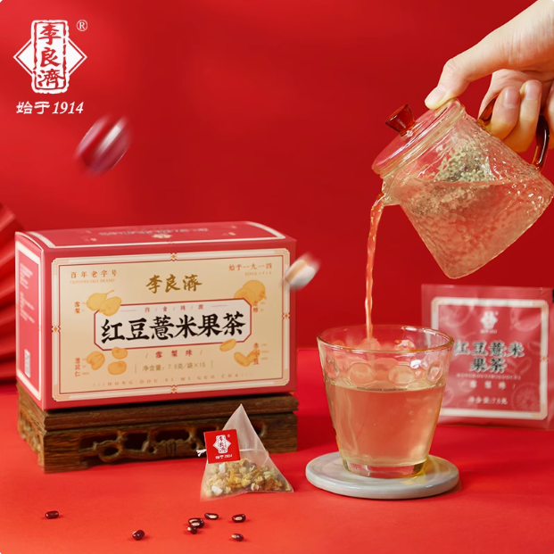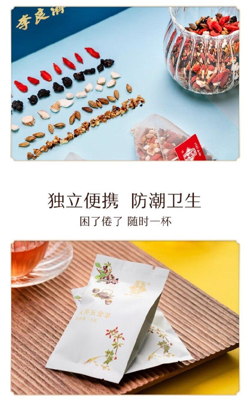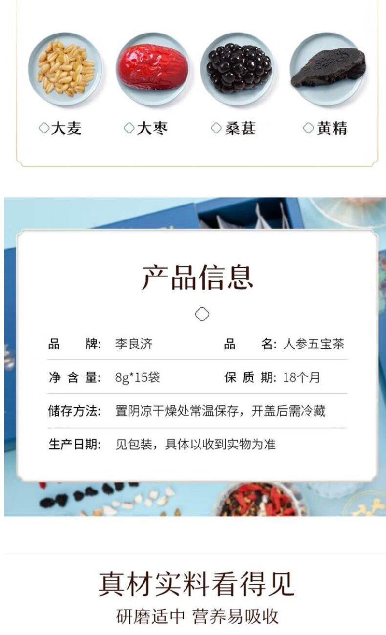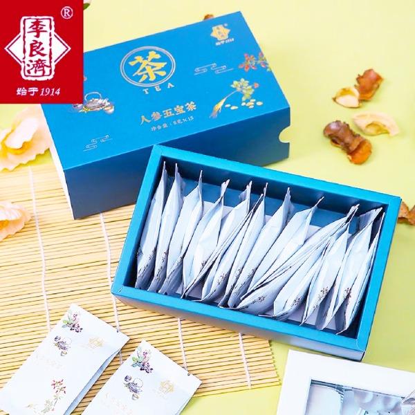 产品:李良济茶饮礼盒装 规格:净含量315克 产品:人参五宝茶(8g*15袋)+枸杞菊花茶(5.5g*15袋)+红豆薏米果茶(7.5g*15袋) 保质量:24个月 贮藏方法:阴凉干燥通风处存放,防潮,防异味 多款膏方可供选择 礼盒包装,送礼佳选