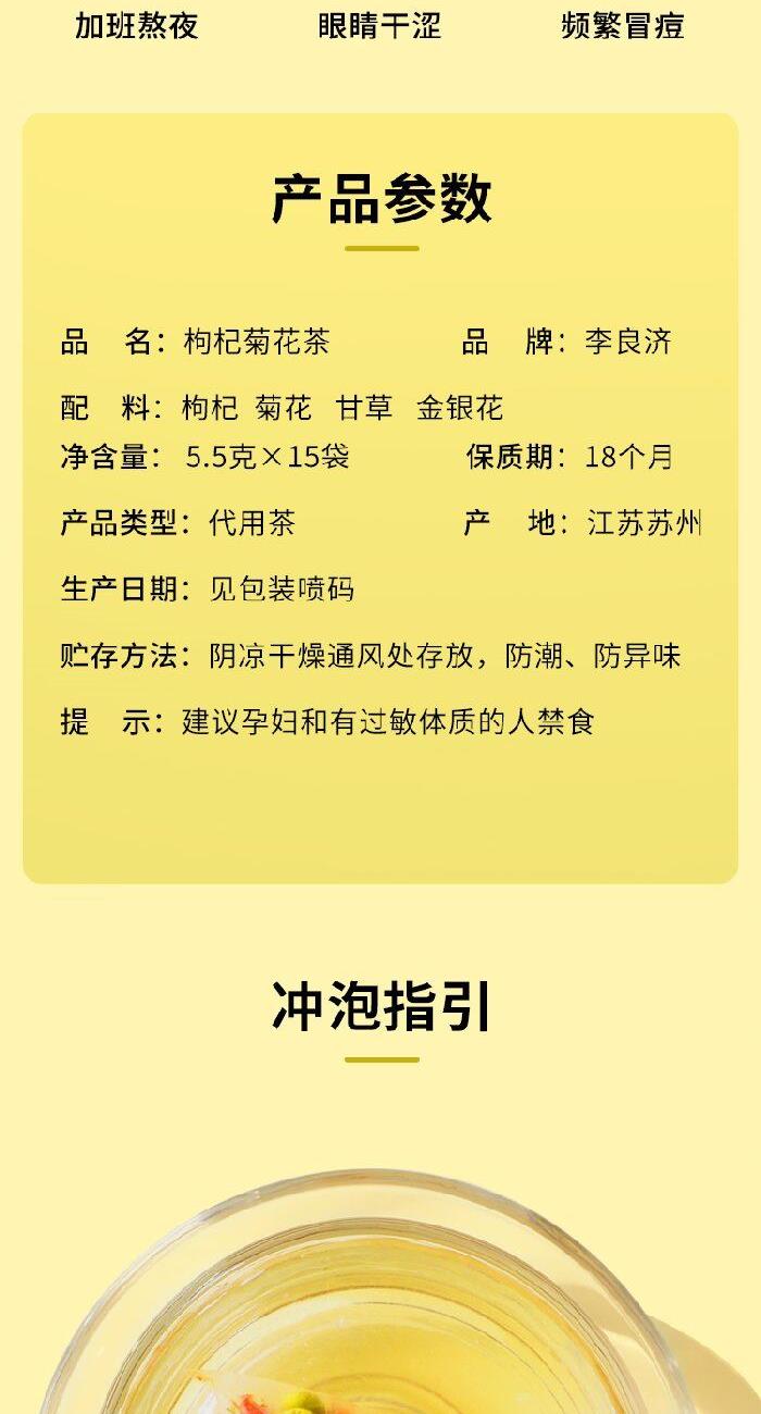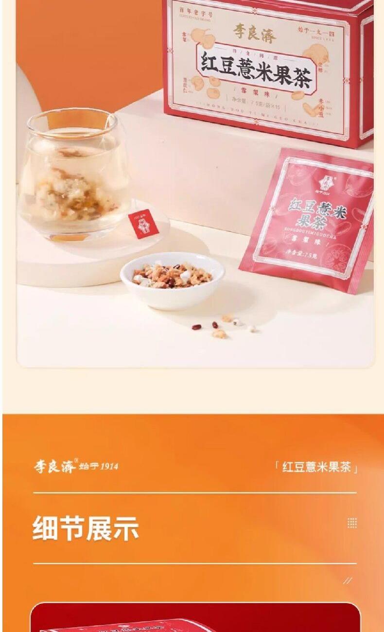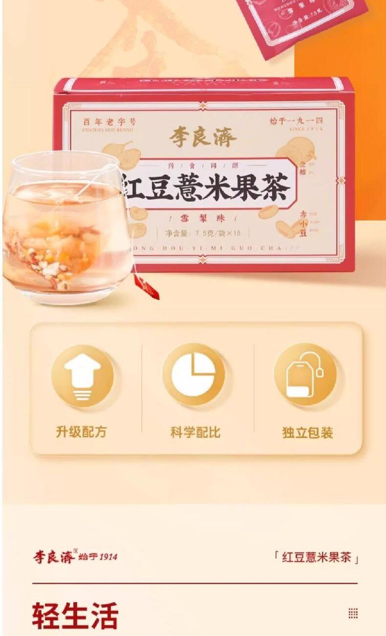 产品:李良济茶饮礼盒装 规格:净含量315克 产品:人参五宝茶(8g*15袋)+枸杞菊花茶(5.5g*15袋)+红豆薏米果茶(7.5g*15袋) 保质量:24个月 贮藏方法:阴凉干燥通风处存放,防潮,防异味 多款膏方可供选择 礼盒包装,送礼佳选