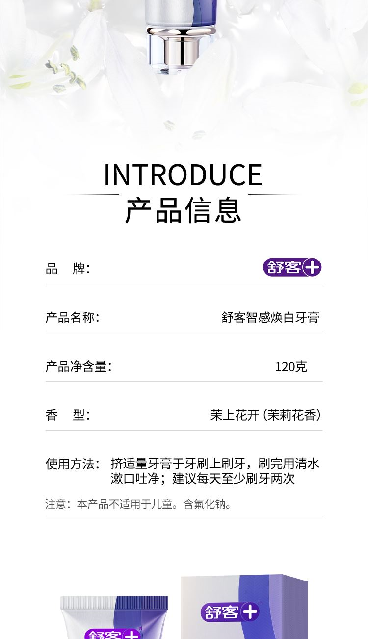 舒客智感焕白牙膏茉上花开香型120g