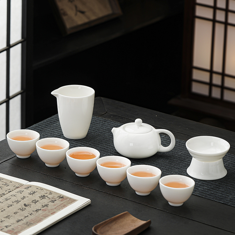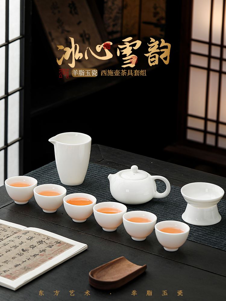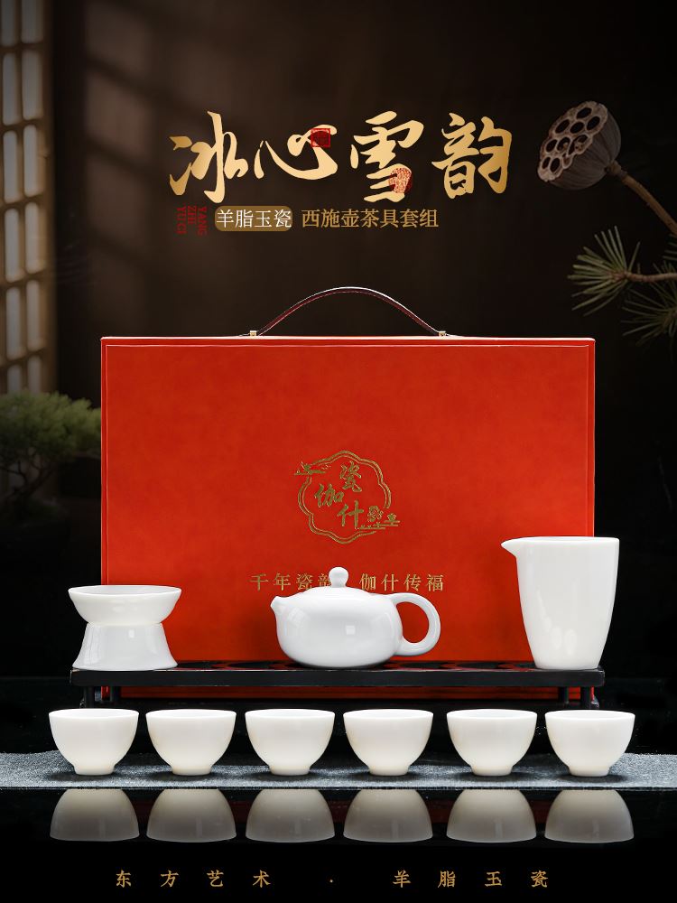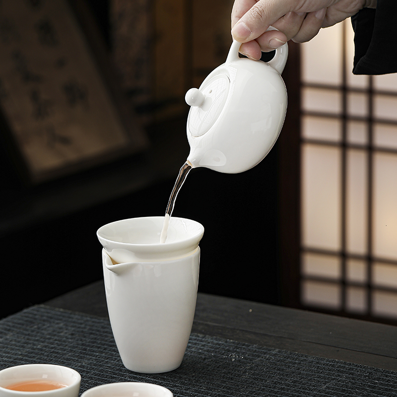 西施壶1:12cm*7cm 容量170ml 公道杯1:8.3cm*9.2cm 容量180ml 茶杯6:6.1cm*4.2cm 容量50ml 茶漏组1:8.1cm*5.5cm 原矿羊脂玉瓷,高温烧制。瓷化强度高,不吸味,易清洗。 釉面光滑细腻,触感温润如玉。洁白如雪,细腻通透。 器型经典,端庄大气,美观耐用。精致礼盒,送礼佳品。
