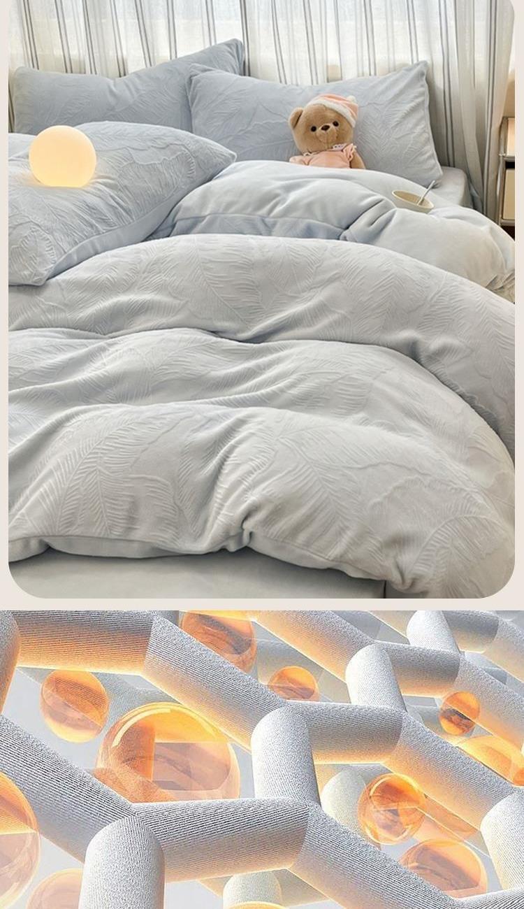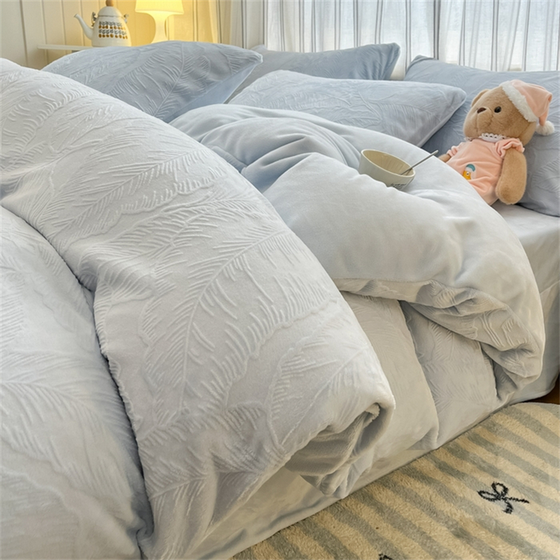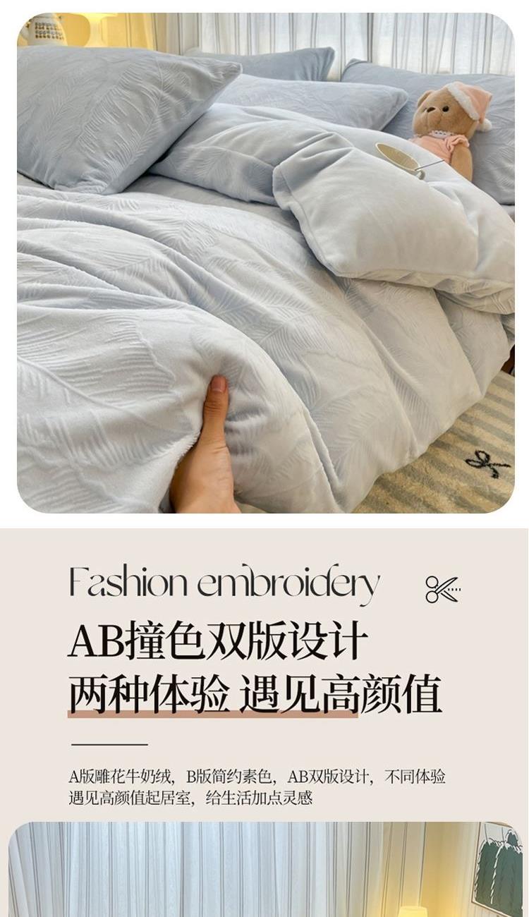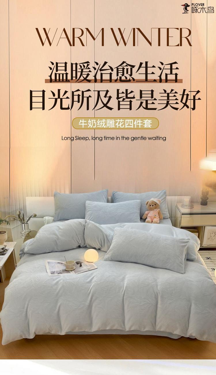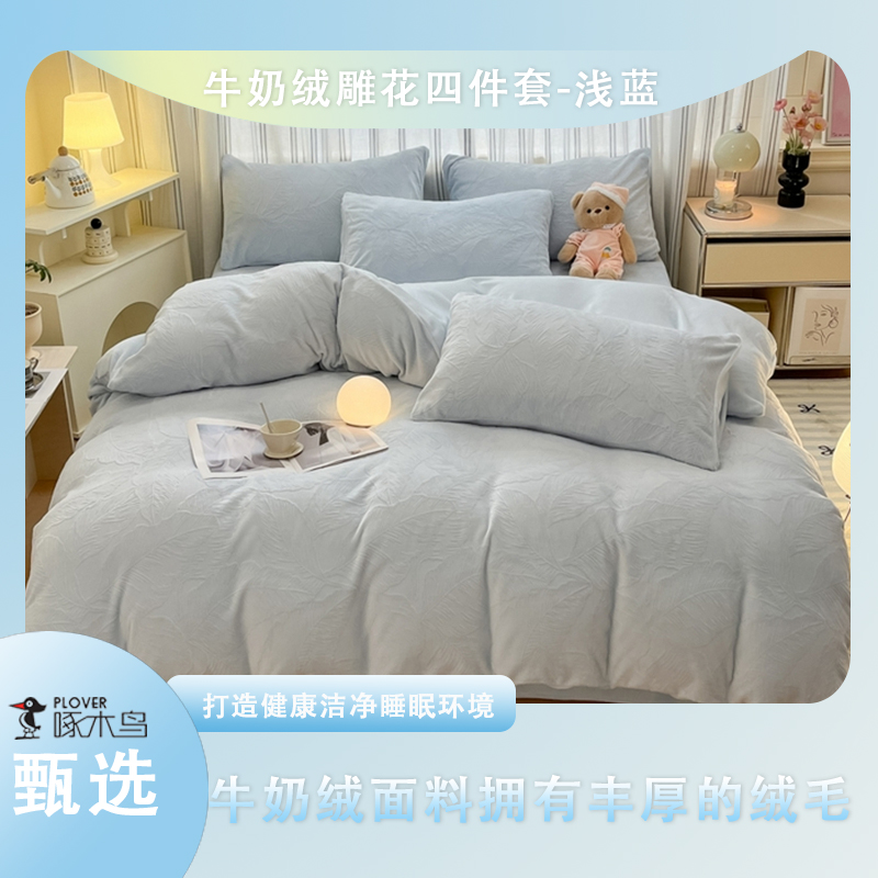 啄木鸟牛奶绒雕花四件套(被罩:200*230cm)