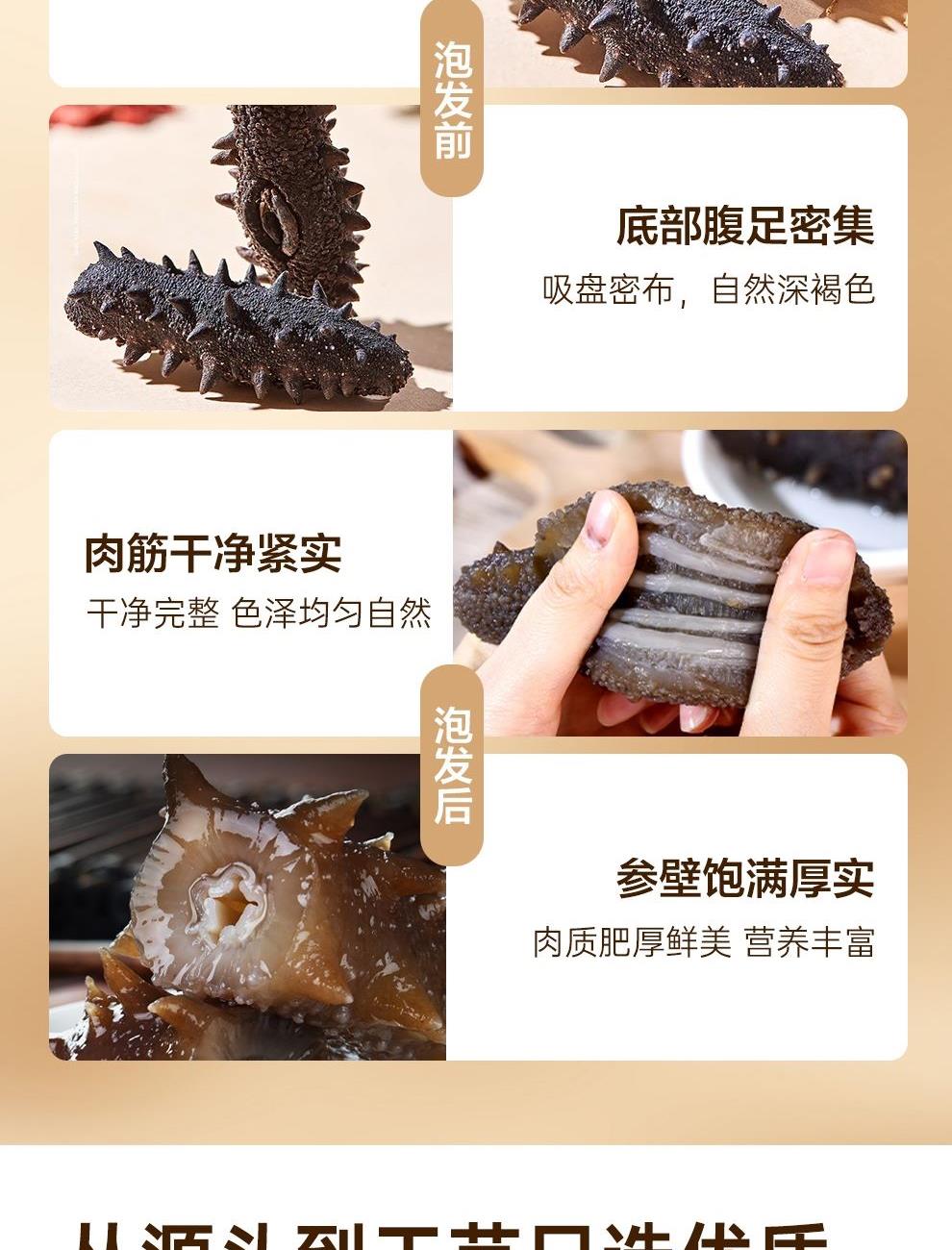 - 淡干工艺保留了海参的营养成分。通过自然晾晒或者低温烘干,减少了海参营养在加工过程中的流失。