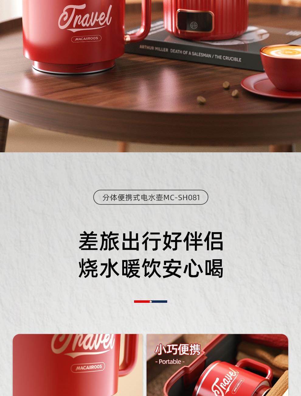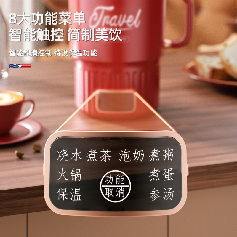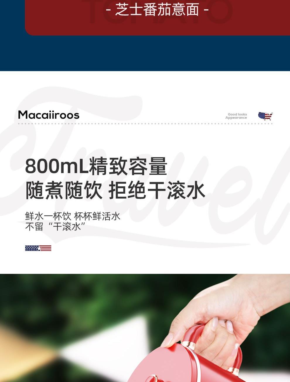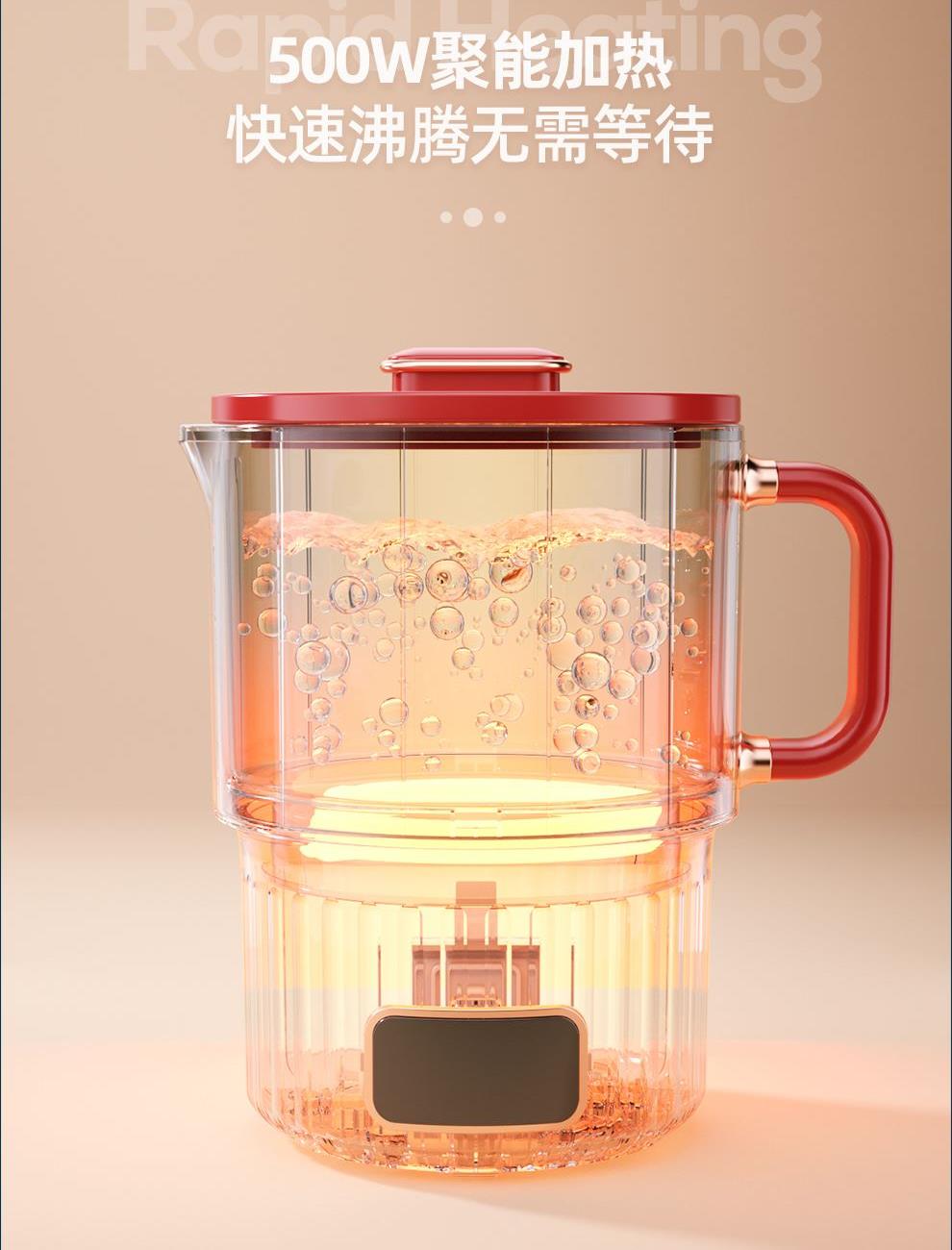 额定功率:500W 额定容量:800mL 额定电压:220V~ 额定频率:50Hz 产品净重:0.75kg 产品毛重:0.85kg 整箱重量:21.6kg 装 箱 数:24台/箱 一机多能八大功能菜单,集烧水、煮粥、火锅等功能一体,特设保温功能; 可折叠壶身分体可拆便携式水壶,小巧易收纳; 304不锈钢内胆食品接触用材质,耐高温耐腐蚀,保温性强; 产品配置配有煮蛋架、收纳袋,电源线拔插分离设计。