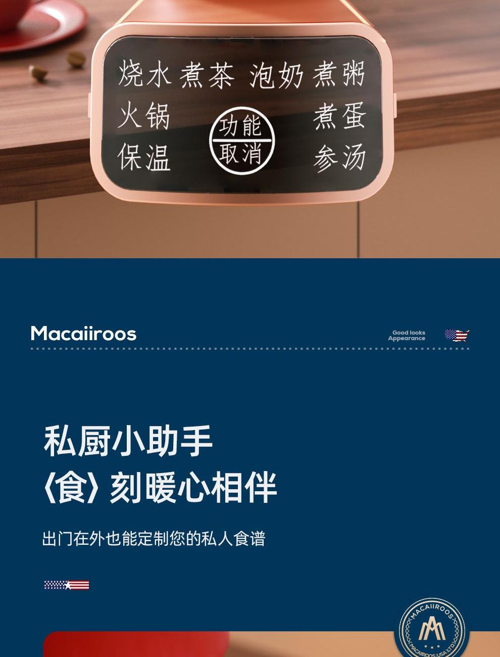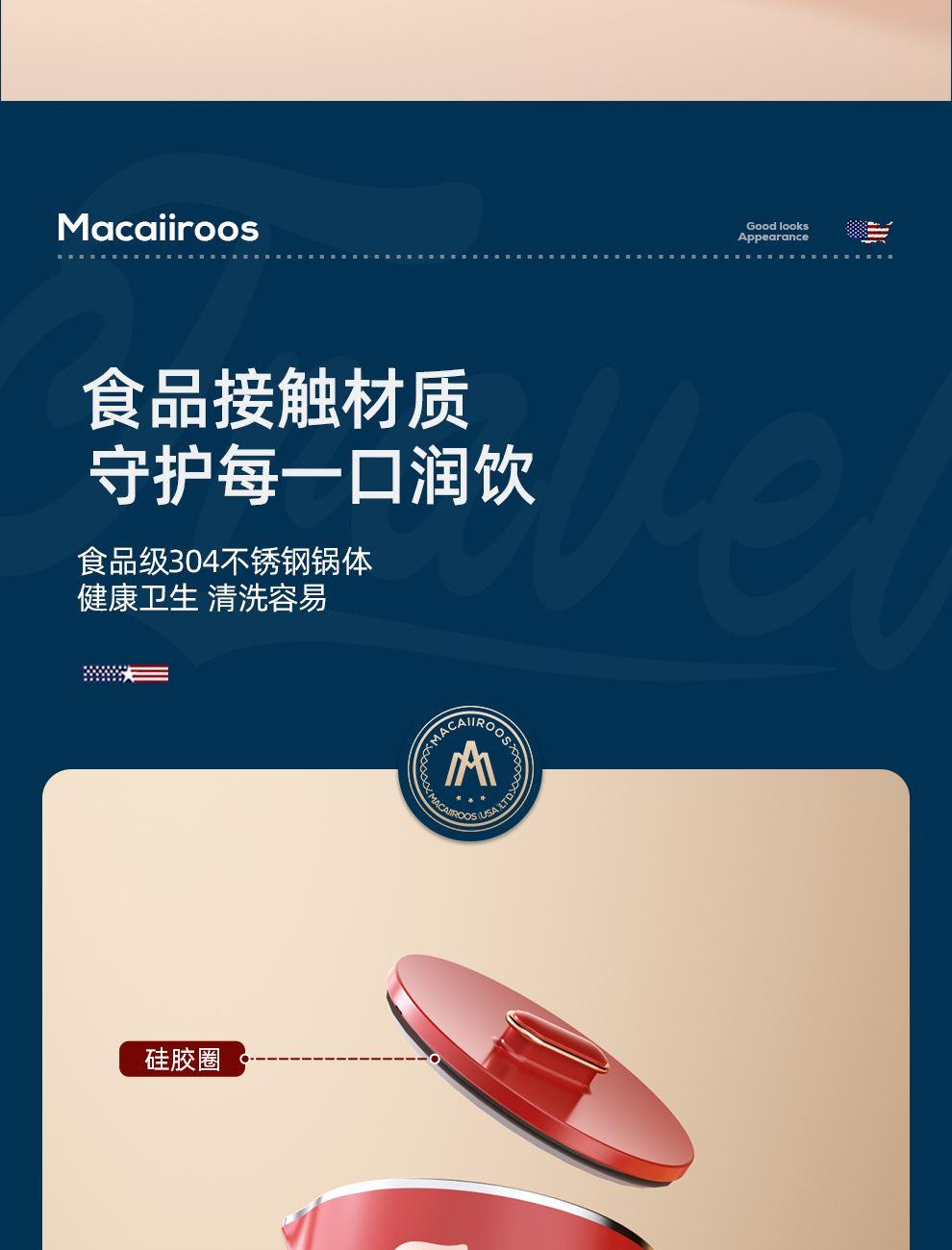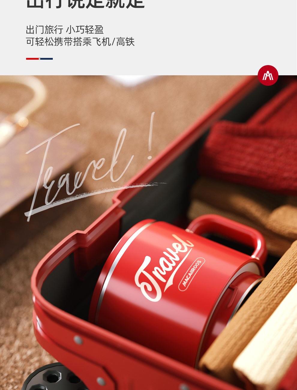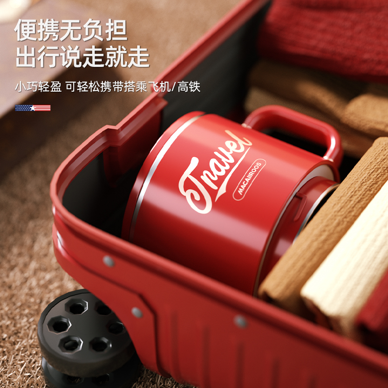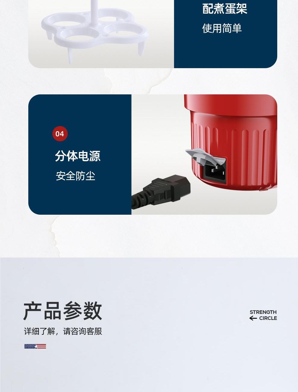 额定功率:500W 额定容量:800mL 额定电压:220V~ 额定频率:50Hz 产品净重:0.75kg 产品毛重:0.85kg 整箱重量:21.6kg 装 箱 数:24台/箱 一机多能八大功能菜单,集烧水、煮粥、火锅等功能一体,特设保温功能; 可折叠壶身分体可拆便携式水壶,小巧易收纳; 304不锈钢内胆食品接触用材质,耐高温耐腐蚀,保温性强; 产品配置配有煮蛋架、收纳袋,电源线拔插分离设计。