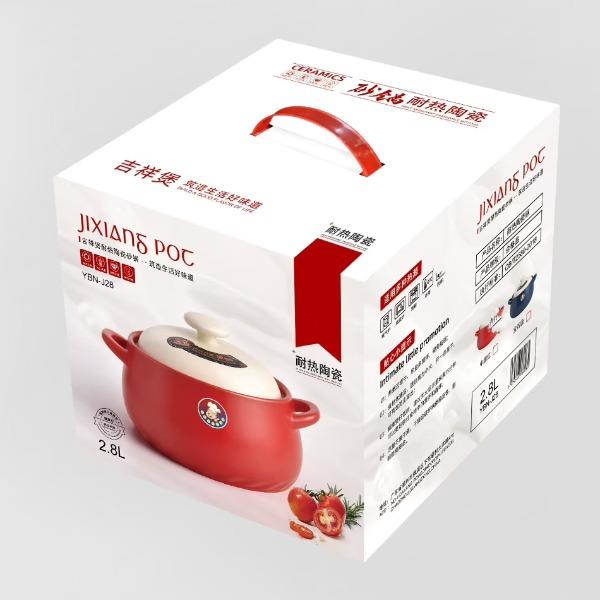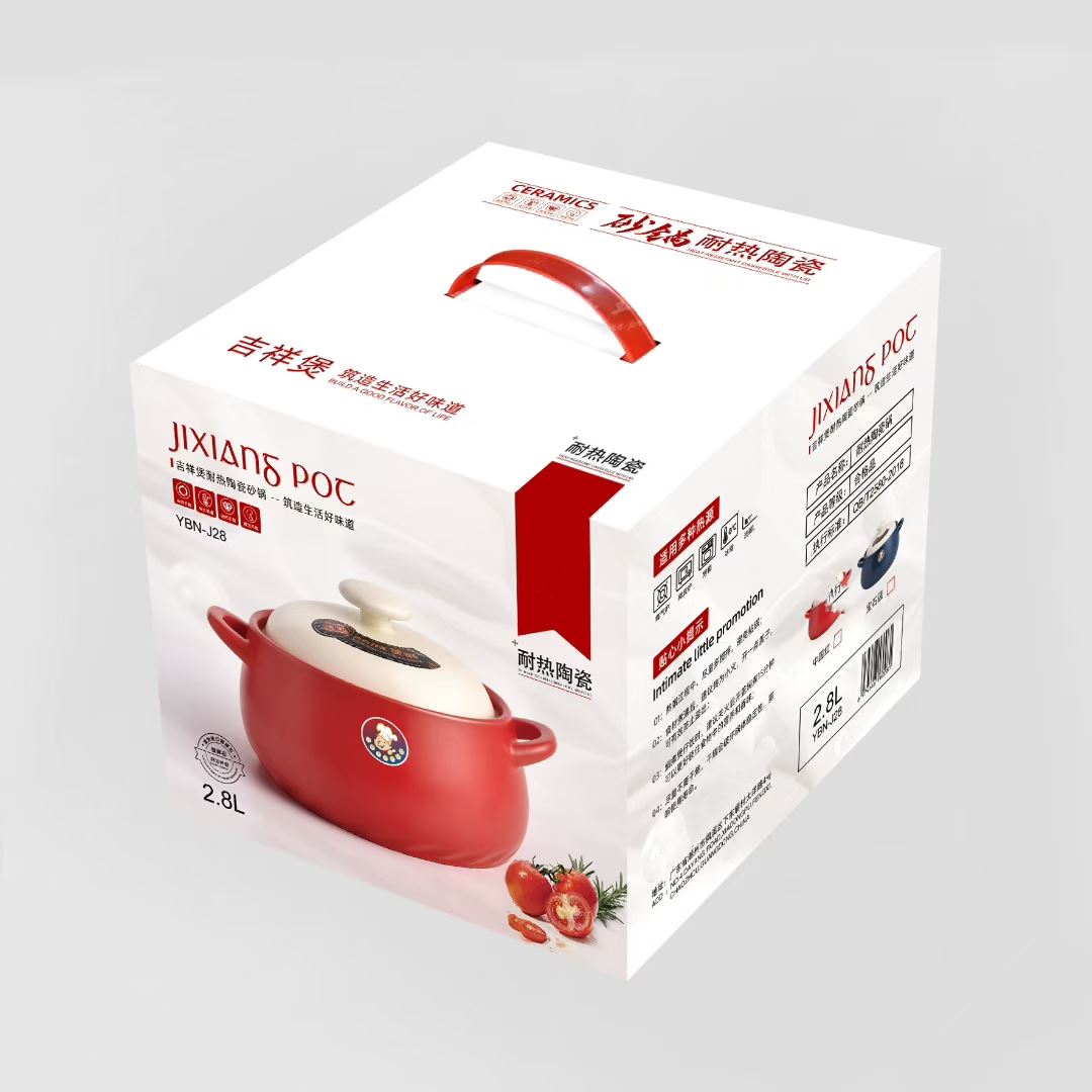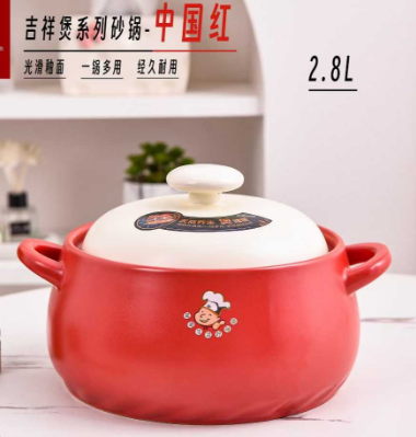 产品组成:整套=1锅+-盖+1彩盒 容 量:2800ML 装 数:8个/箱 材 质:锂辉石 颜 色:中国红,宝石蓝 产品特点: 高含锂配方、釉面亮丽,做工精细,可干烧500度,泡沫彩包简约大方的外观。有颜值兼具实用性,是送礼/自用的佳选