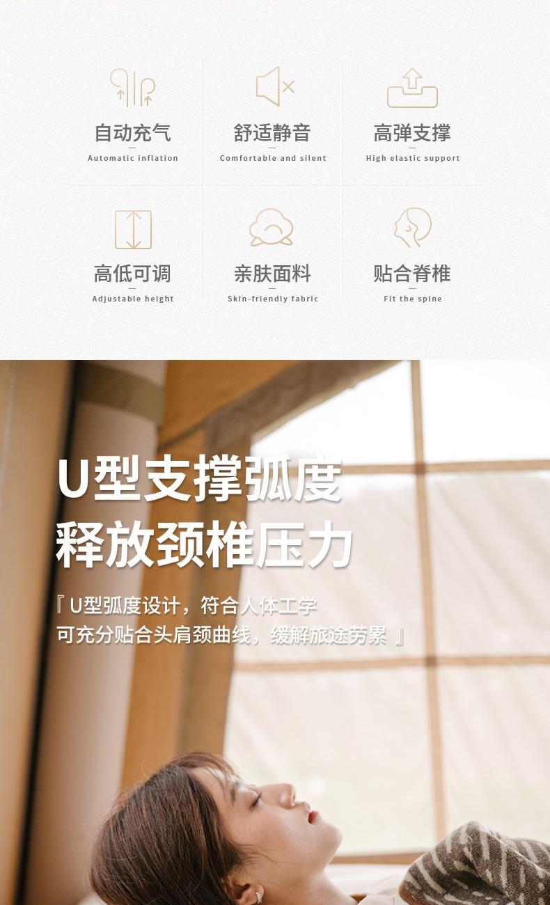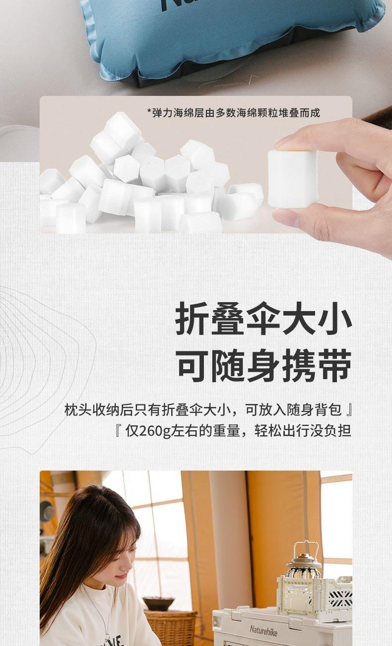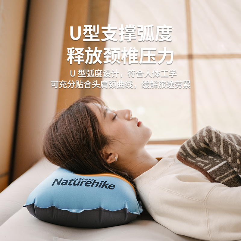 挪客自动充气枕头午休睡枕便携旅行旅游露营舒适护腰靠枕