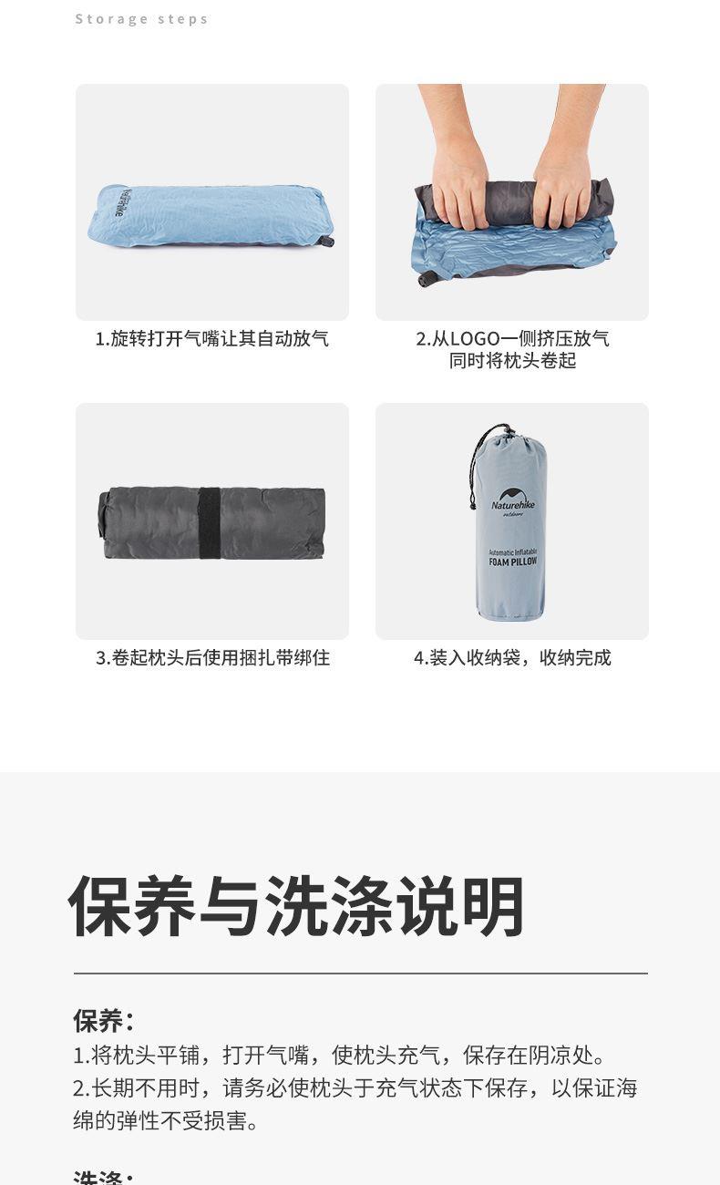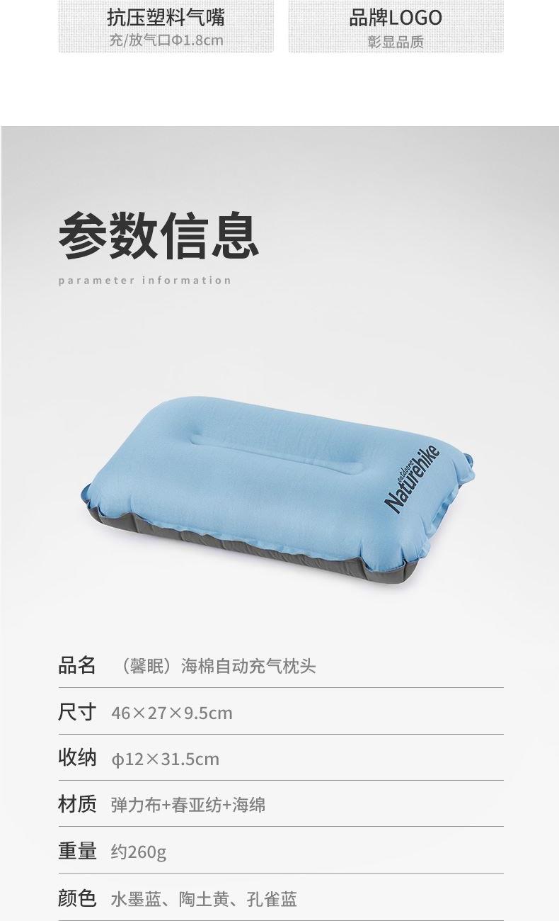 (馨眠)海绵自动充气枕头 尺寸 46x27x9.5cm 收纳 ф12x31.5cm 材质 弹力布+春亚纺+海绵 重量 约260g