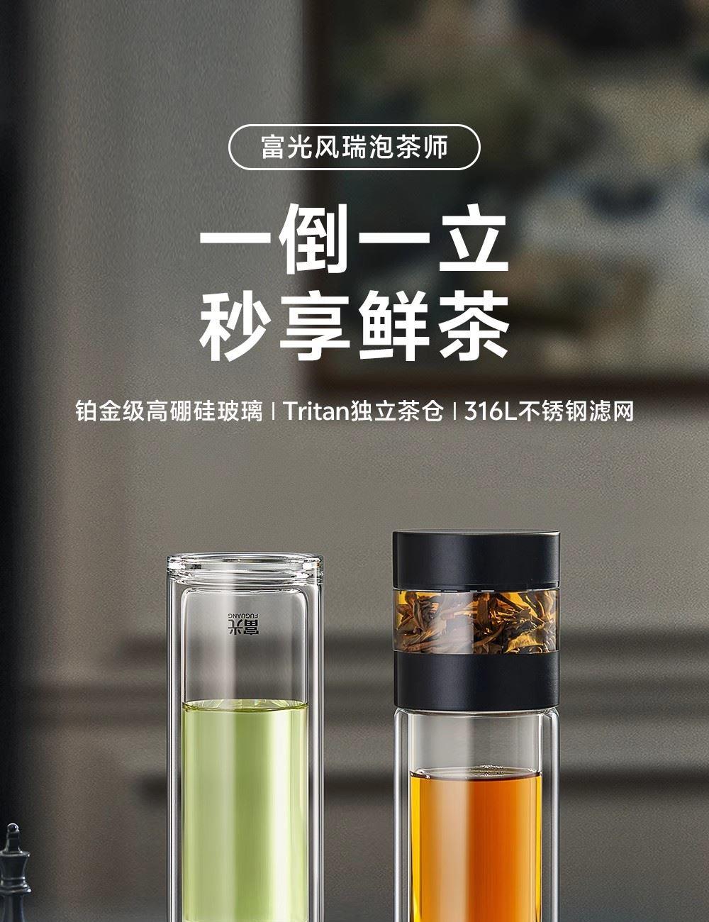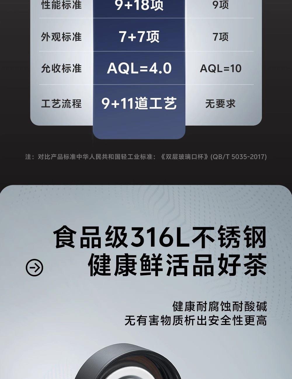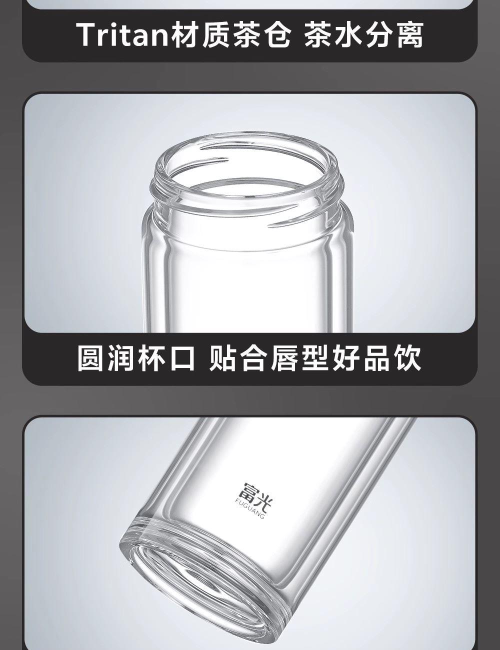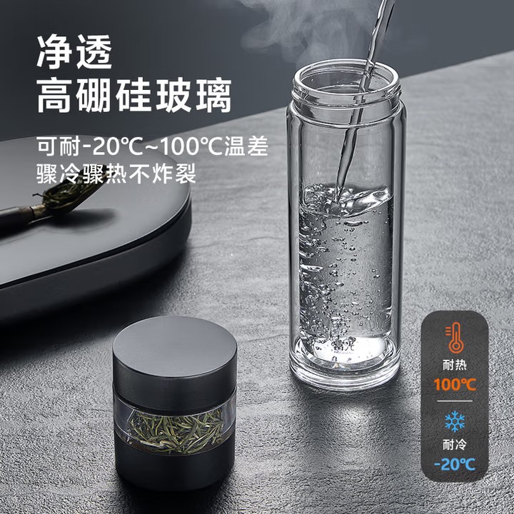 容量:300ml 颜色:灰色 蓝色 尺寸:65.5*232mm 材质:铂金级双层高硼硅,加厚一体成型杯底。 金额数磨砂质感杯盖,316L不锈钢,婴幼儿级Tritan独立茶仓。 两种泡茶方式自由选择,一杯两用,大小杯随意切换(去掉茶仓秒变随行小杯),一立一斜实现茶汤分离。 包装:单瓦盒