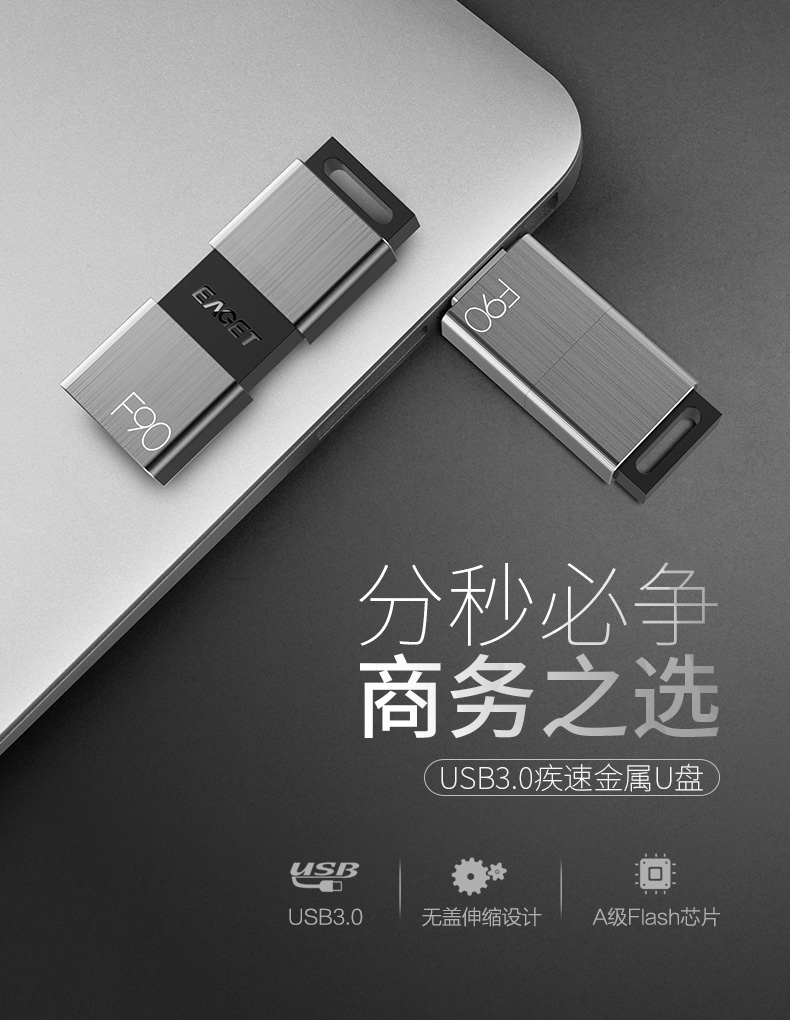 (EAGET)忆捷高速金属推拉式车载商务优盘F90-32G