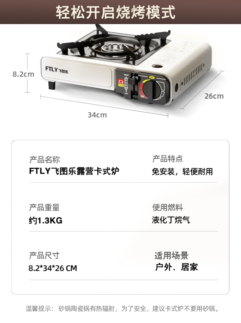 FTLY飞图乐家庭露营烧烤套装(天幕+折叠桌椅+卡式炉烤盘)