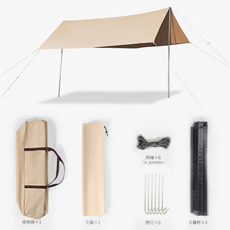桌椅材质:600D双层牛津布 +镀锌钢管 天幕材质:210D防水牛津布 卡式炉烤盘材质:铁 桌子尺寸:51*50*53cm 椅子尺寸:65*49*49cm 天幕尺寸:3*3m 卡式炉尺寸:26*8.2*34cm 烤盘尺寸:直径28cm 商品重量:约11kg