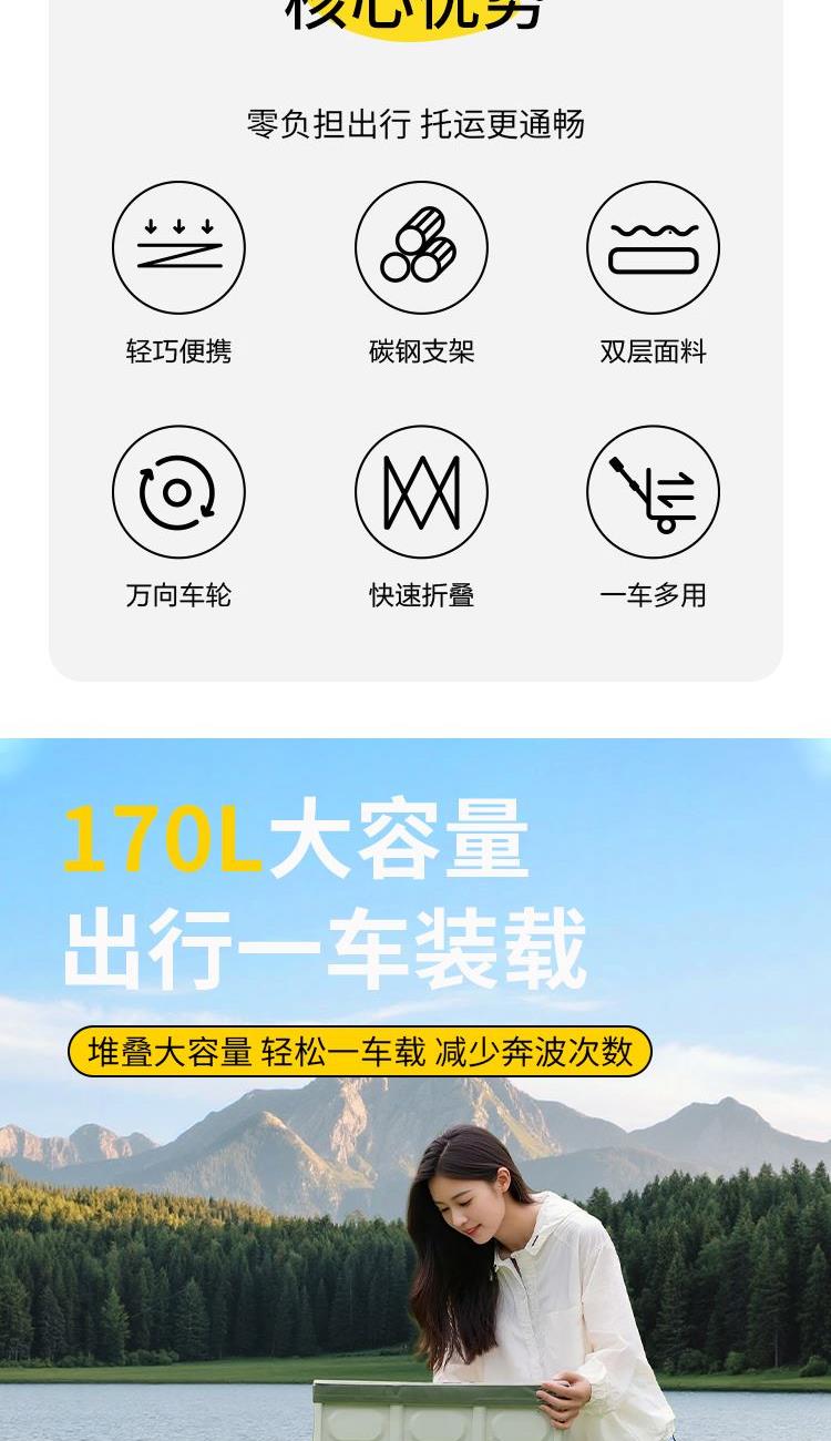 "颜色:米和绿色拼色 产品展开尺寸:72*42*91cm 产品折叠尺寸:24*17*59cm 产品毛重:5.5kg 产品材质:铁 聚丙 600d布 内盒尺寸:62x18x24"