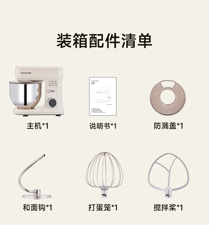 顺然SUNATUR直流定时多功能厨师机标配款SM-606E