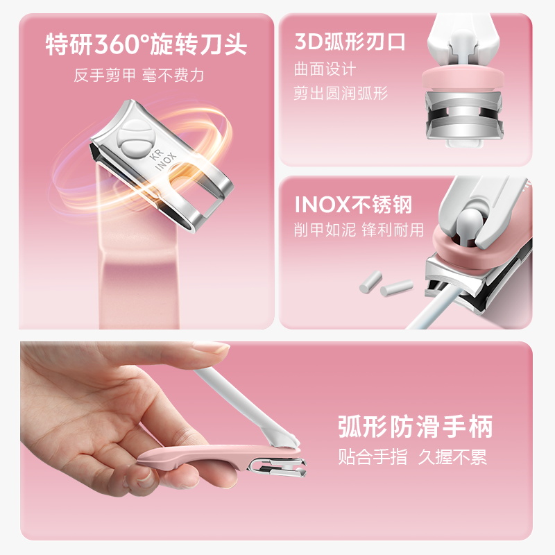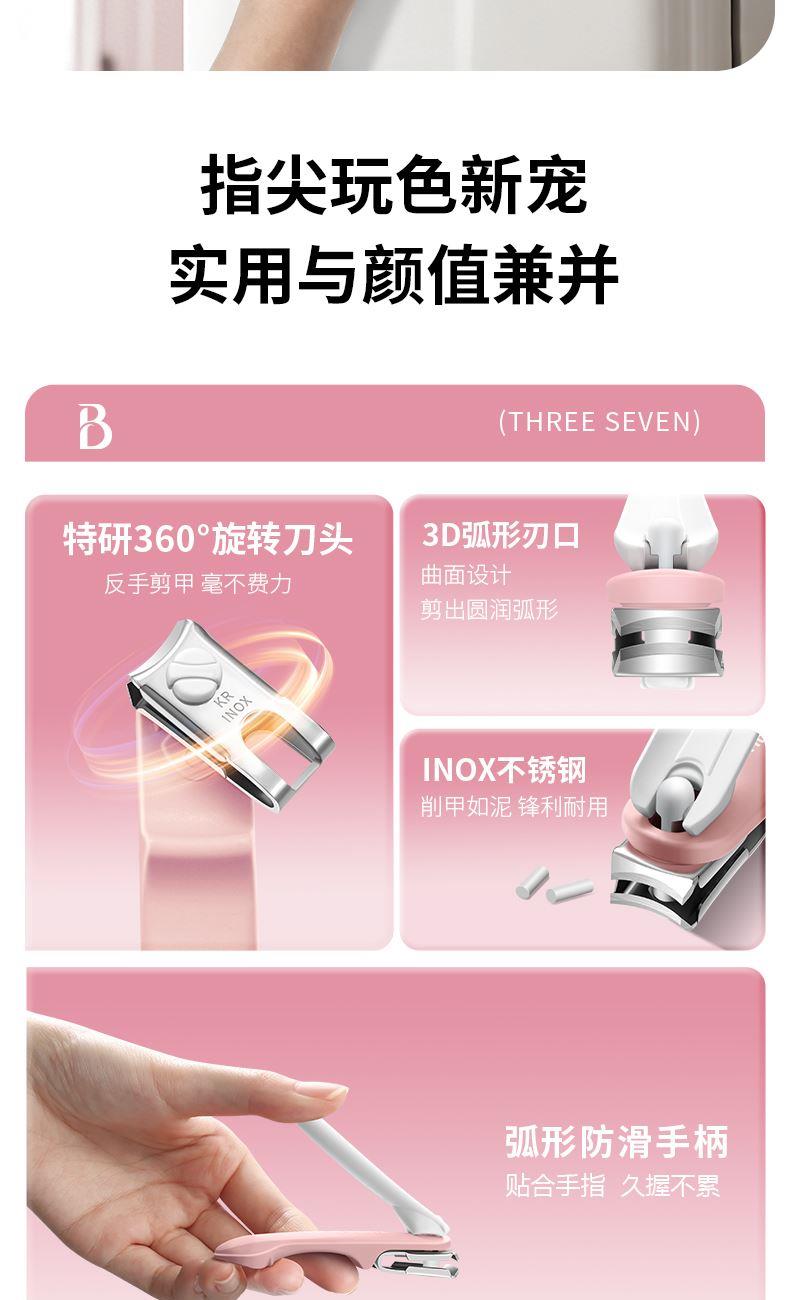 777指甲刀套装360°旋转指甲剪3件套PL035粉