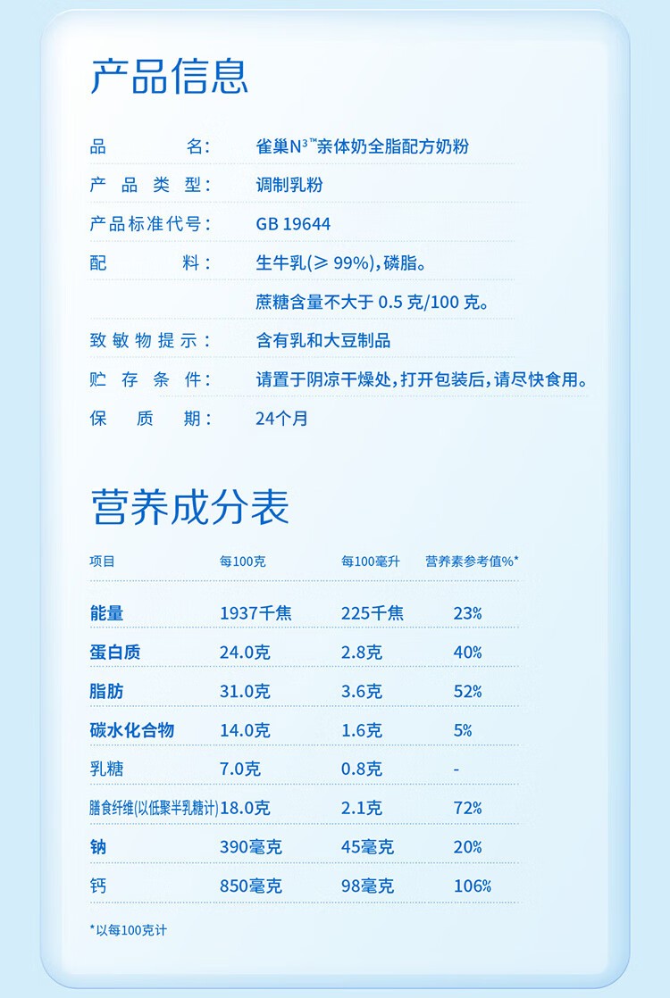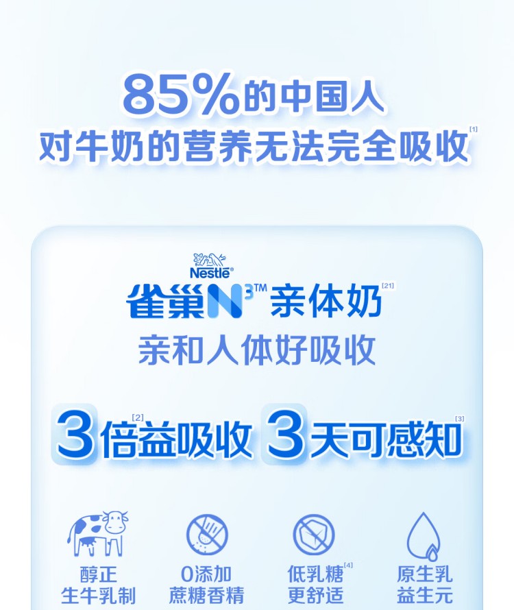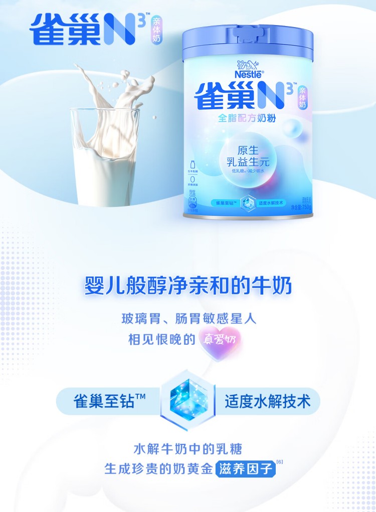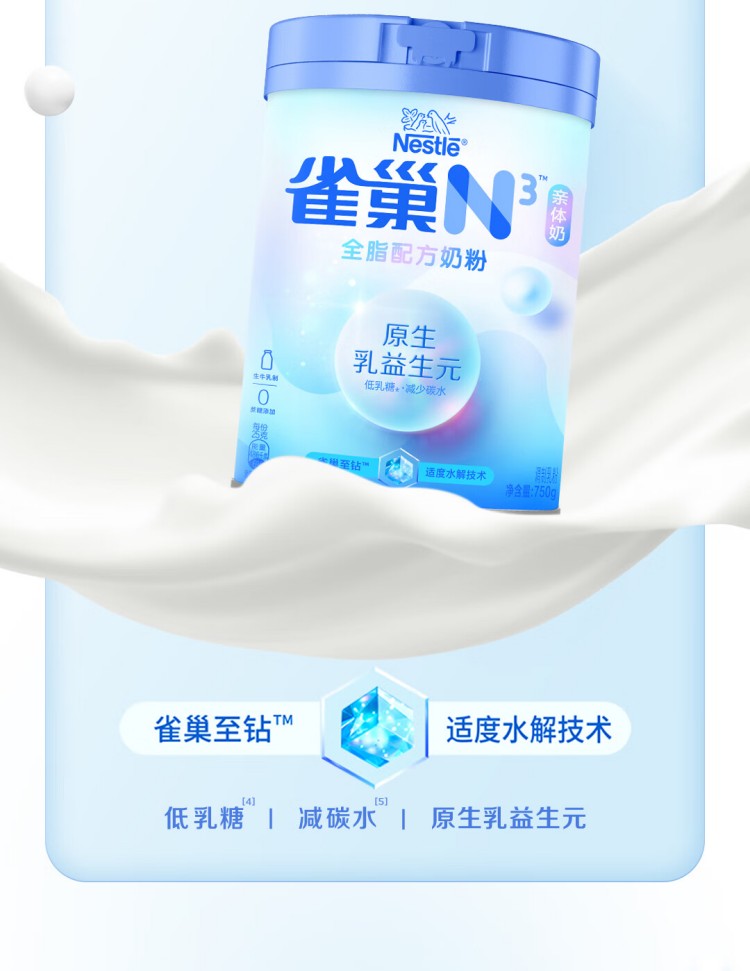 雀巢(Nestle)N3亲体奶全脂配方奶粉750g罐装