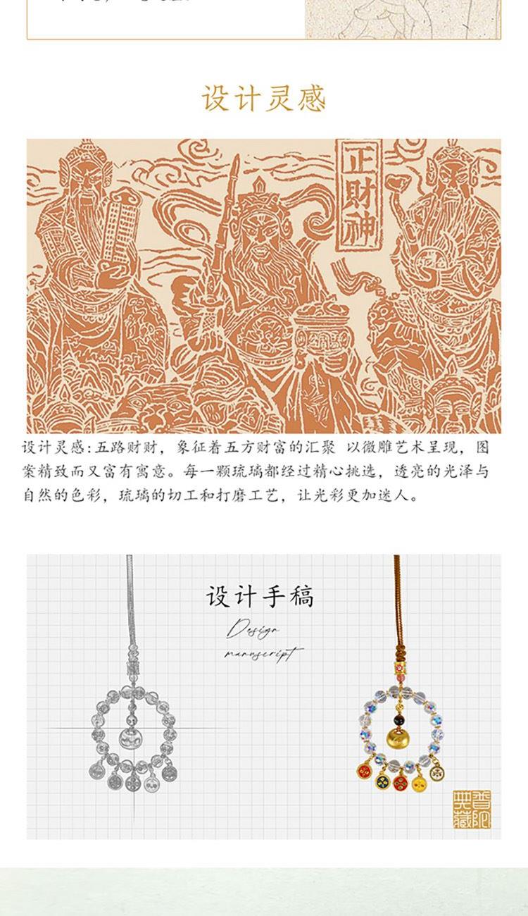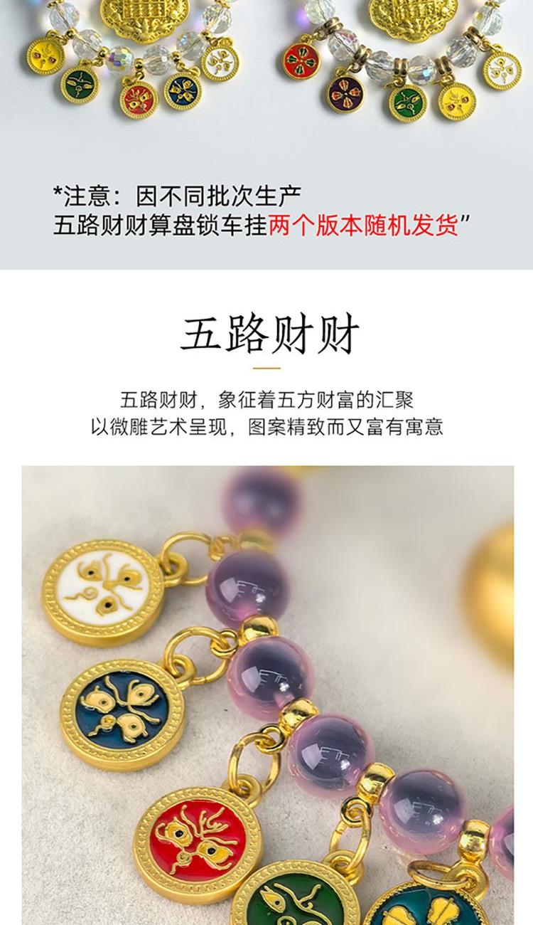 招财与守财并举: 五路财神车挂寓意不仅积极地从五方招揽财富,还能牢牢地守住财富,防止破财、漏财。