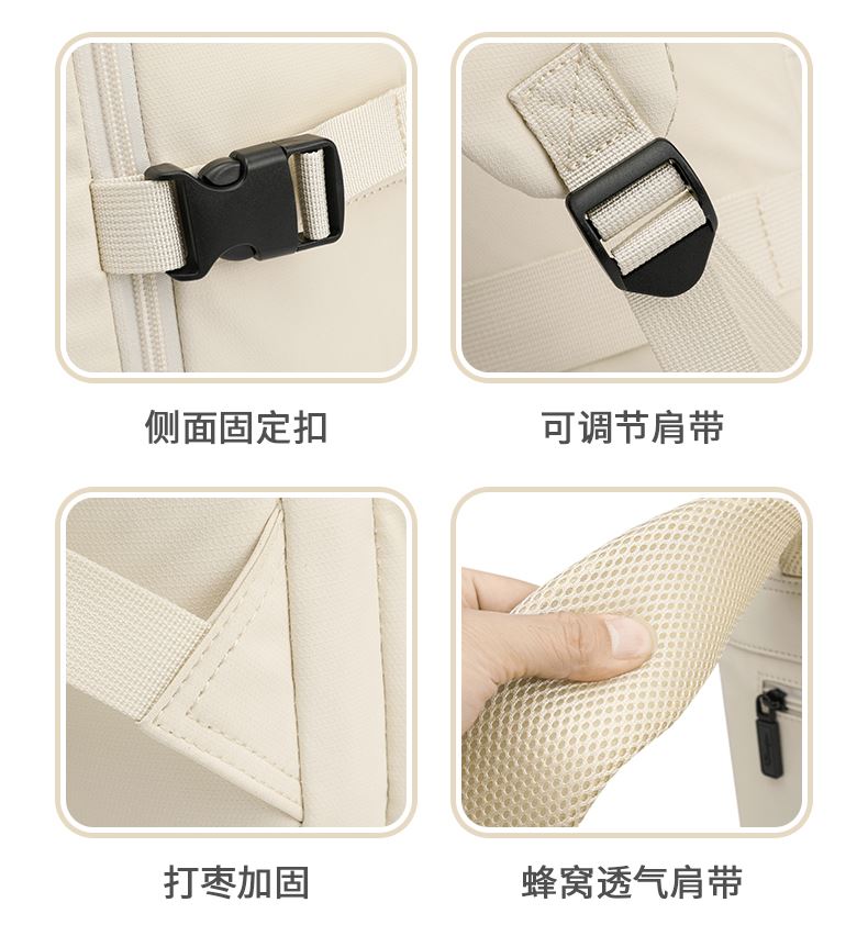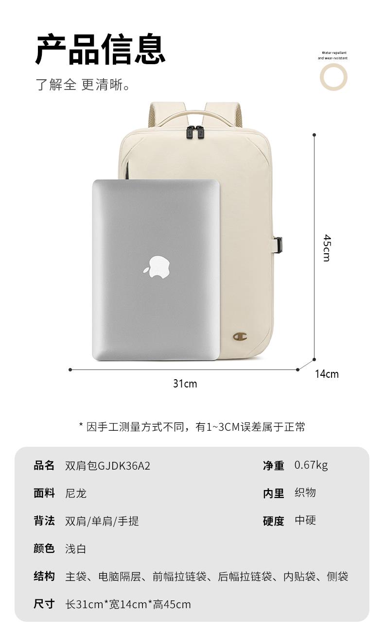 类别:双肩包 颜色:浅白 面料:织物 里料:织物 闭合方式:拉链 尺寸:310*140*450mm 吊牌价:690元 应用场景:日常包 上市时间:2025年秋季 类别:双肩包 包袋大小:中包 适用人群:男女通用