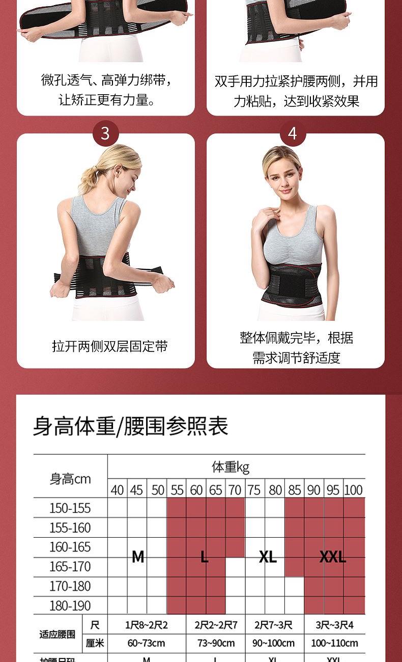 1.运动护腰透气,舒适不闷热,腰部支撑,保护腰椎,弹力织带,支撑钢板,双重固定防护。