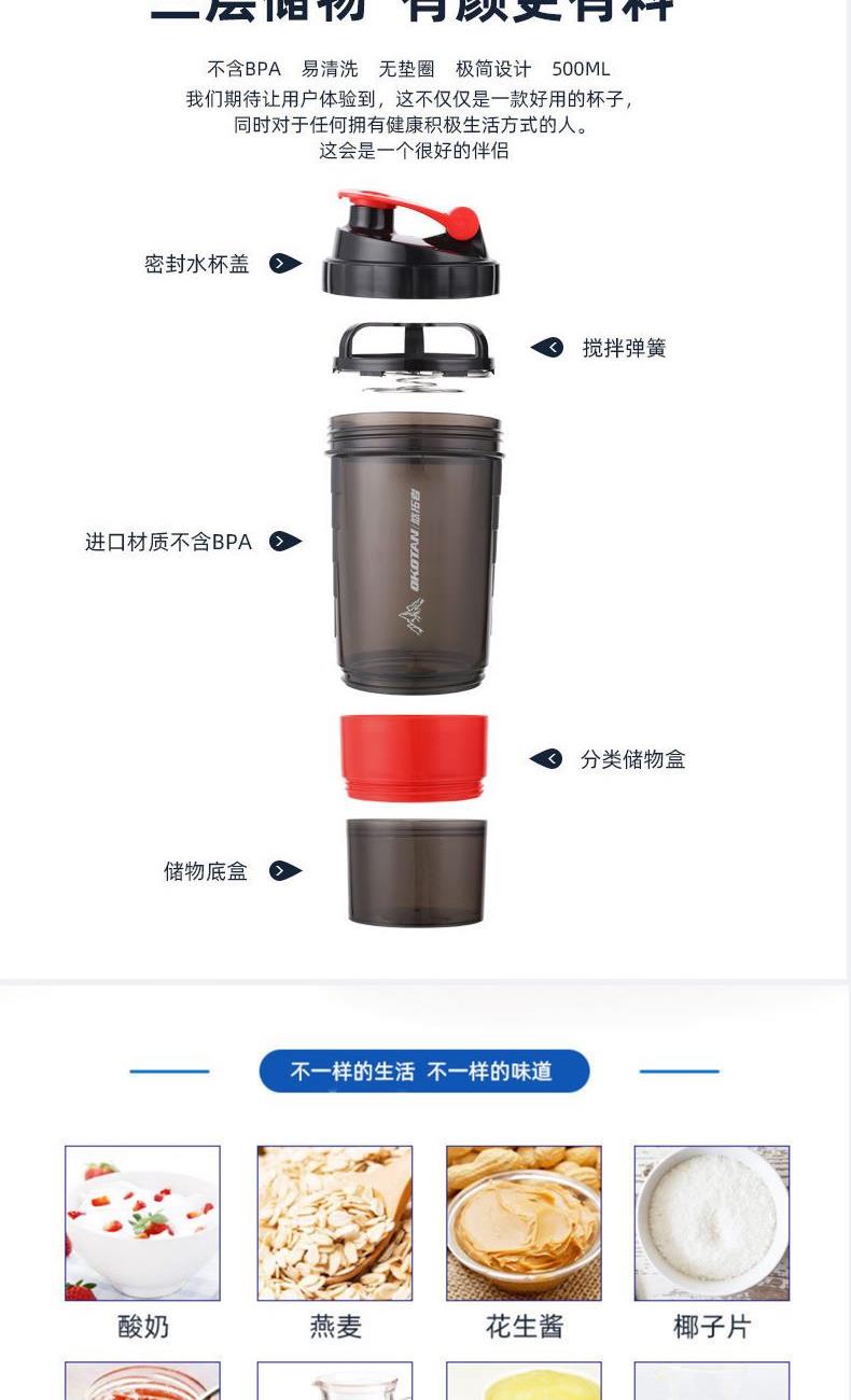 5.三层运动摇摇杯,直饮杯加两层多用储物仓,方便便携。