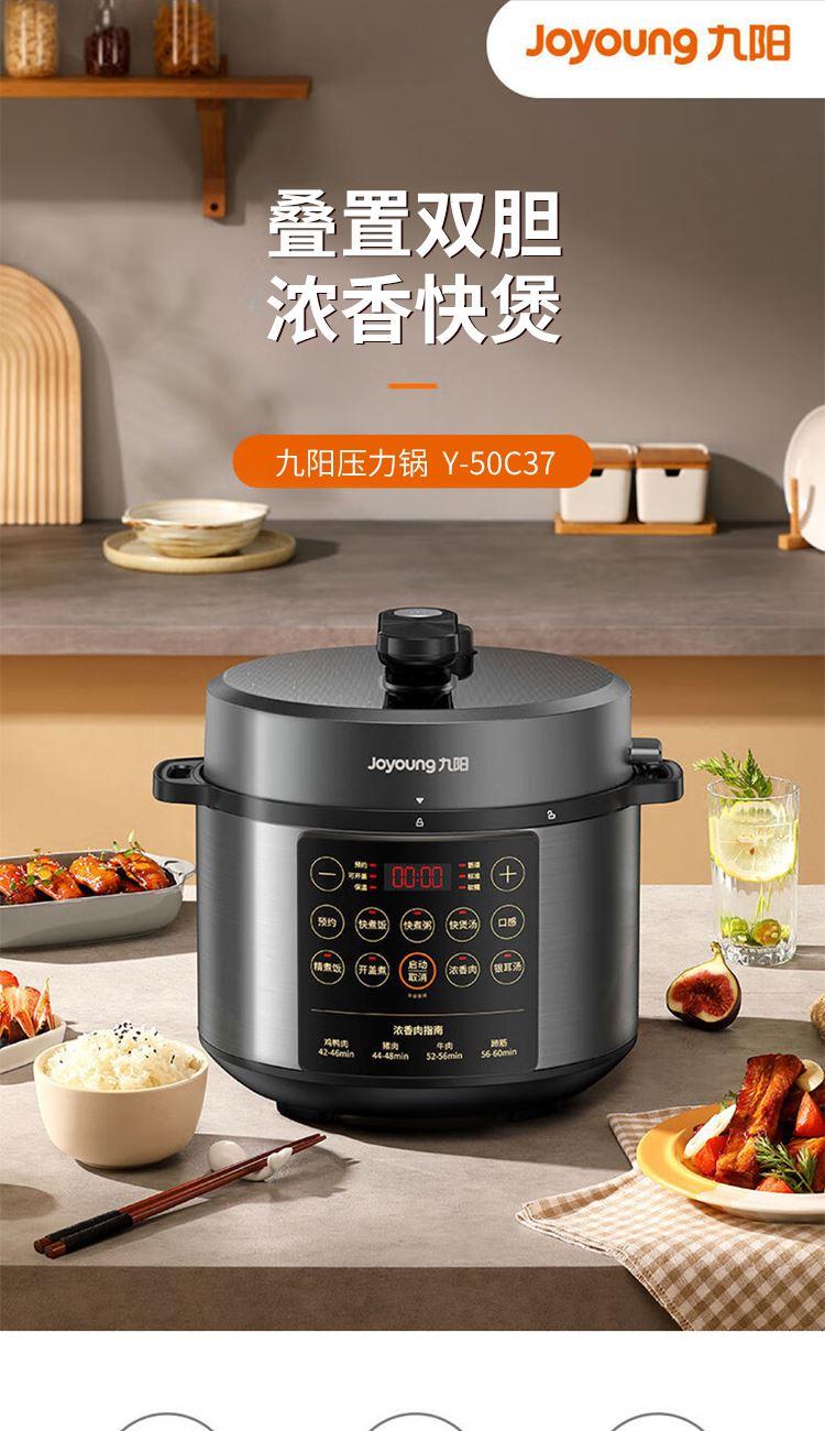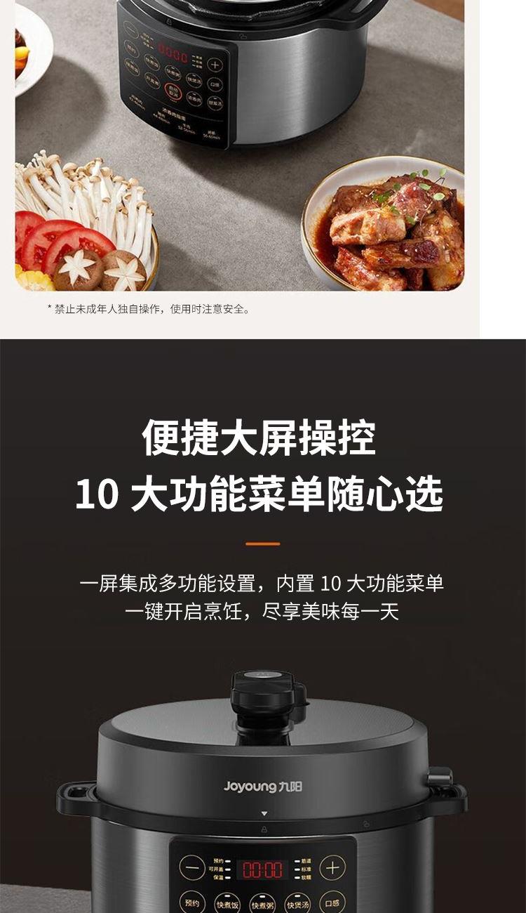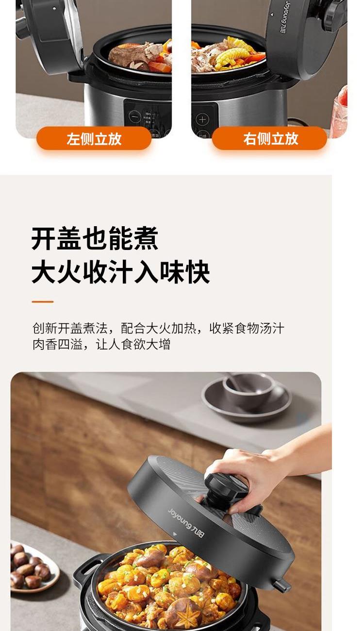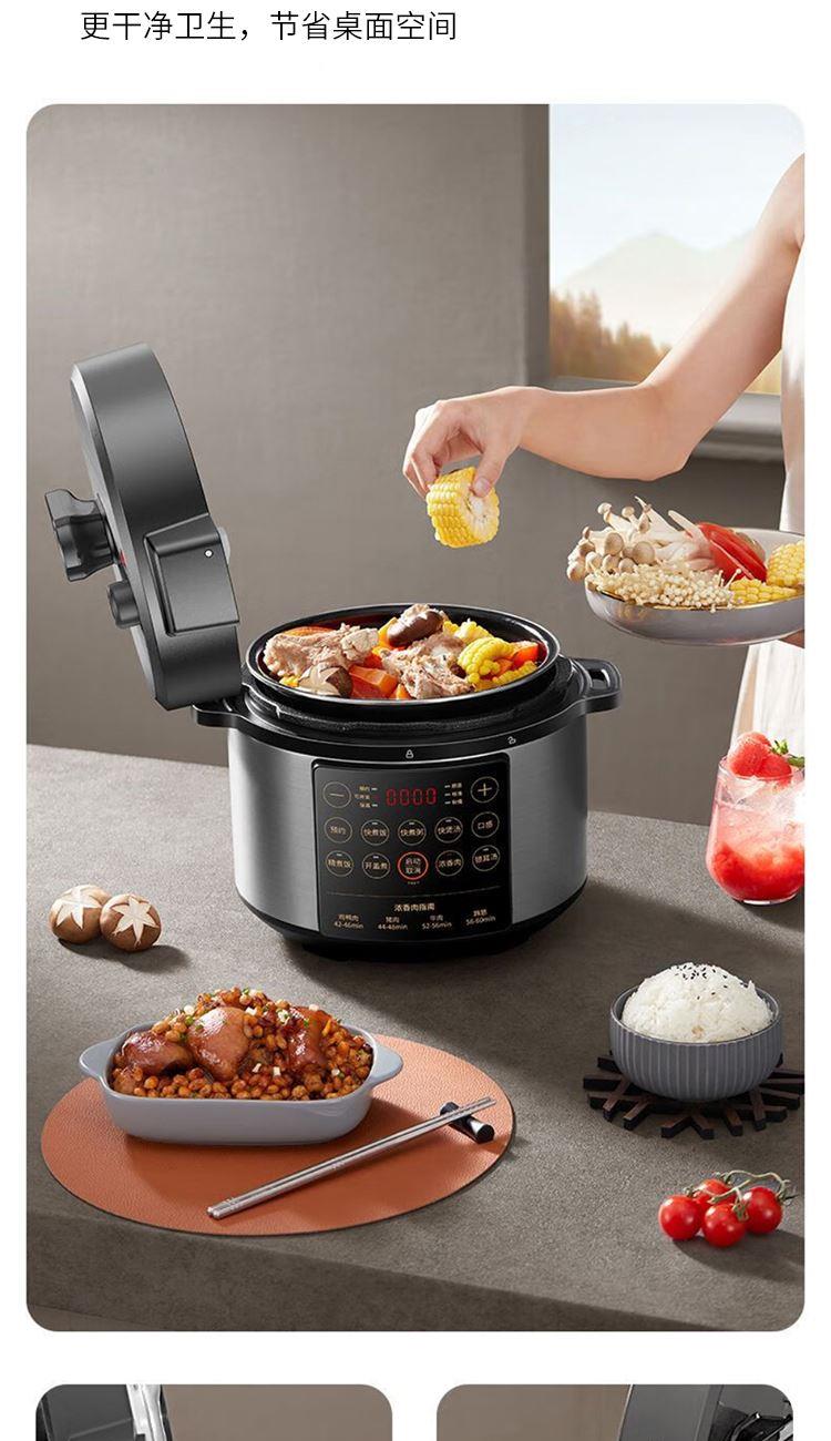 "1、铜匠厚釜内胆,导热强不粘锅; 2、一煲双胆(5L铜匠厚釜内胆+4.5L瓷晶厚釜) 3、底盘加热系统,反向排压按键; 4、开盖收汁,可立式上盖; 5、24小时预约,3档口感可调; 6、容量5L,功率1000W。 "