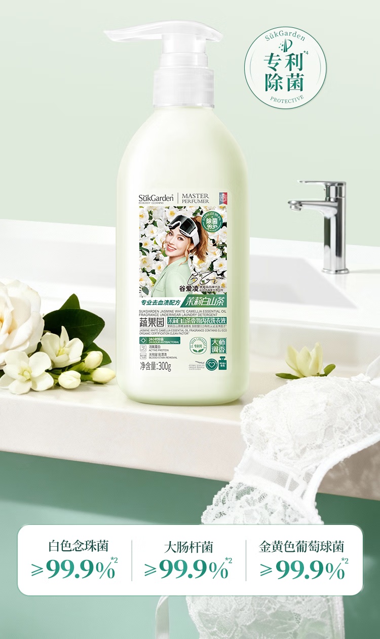 8. 蔬果园茉莉白山茶香氛内衣洗衣液300g