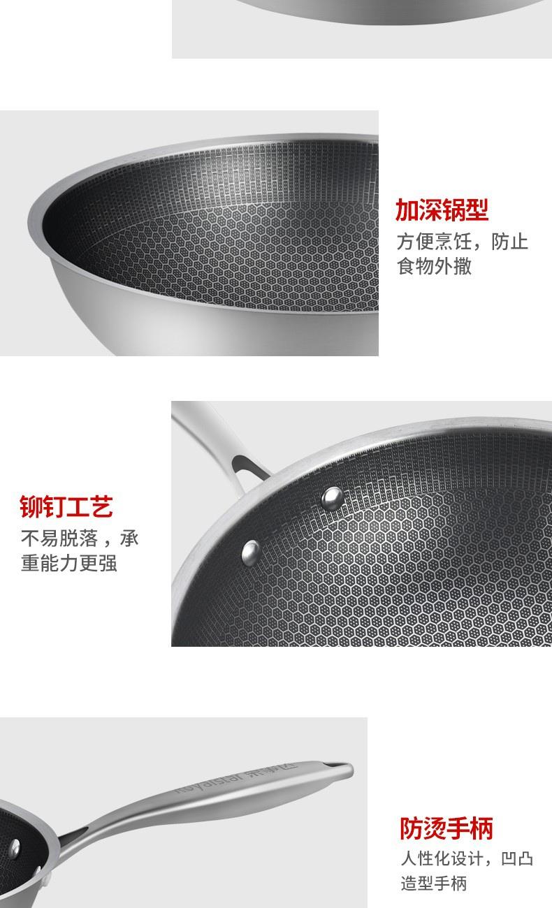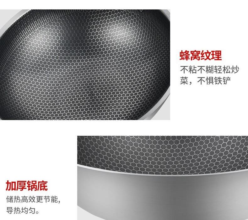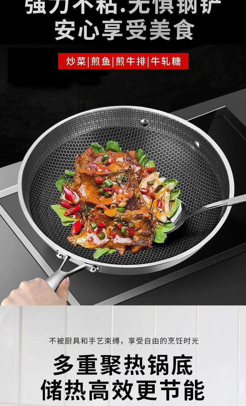规 格: 30cm 材 质:食品级不锈钢 包装尺寸:60.5*14.6*35.5cm 产品为食品级不锈钢雕刻工艺,具有超不沾效果而且少油烟。炒锅30公分大口径加厚锅身防滑锅底配防烫隔热防烫隔热不锈钢手柄,炒锅具有不生锈耐钢铲等优点,炒锅适合所有炉具。