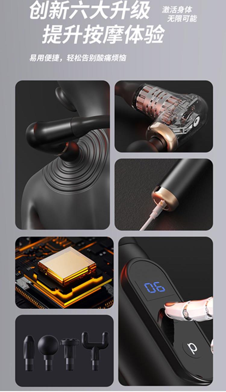 1、敲背筋膜枪,全身部位适用,按摩无盲区,真正实现按摩自由;