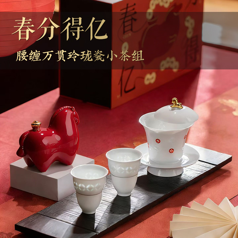 尾桥下窑春分得亿玲珑瓷腰缠万贯功夫茶具小套装会议开业伴手礼