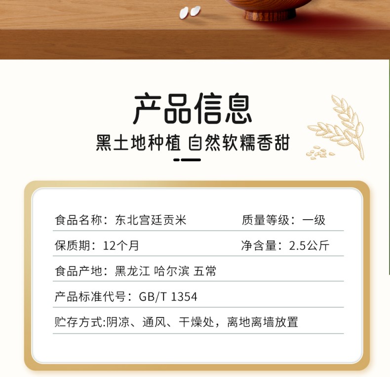 规格:2.5公斤 产品标准代号:GB/T 1354 质量等级:一级 米种:东北长粒香米 保质期:12个月 尺寸:240*265*73mm 包装简约大气,湿地种植,甄选稻种,营养丰富,颗粒饱满,米粒均匀,醇厚绵长,芳香四溢,享誉中国,五常源产,来自“稻米之乡之一”的黑龙江。