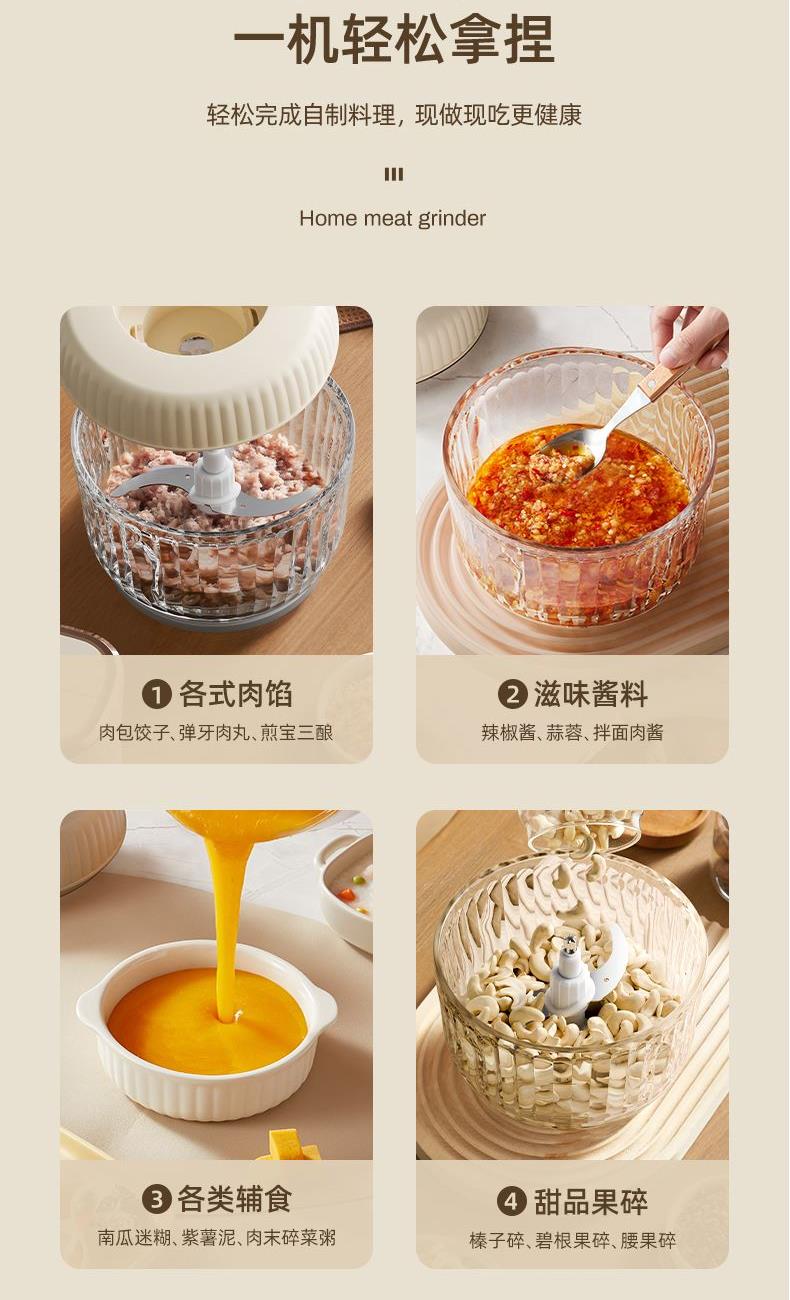 3、可绞打肉类,果蔬,佐料等食材