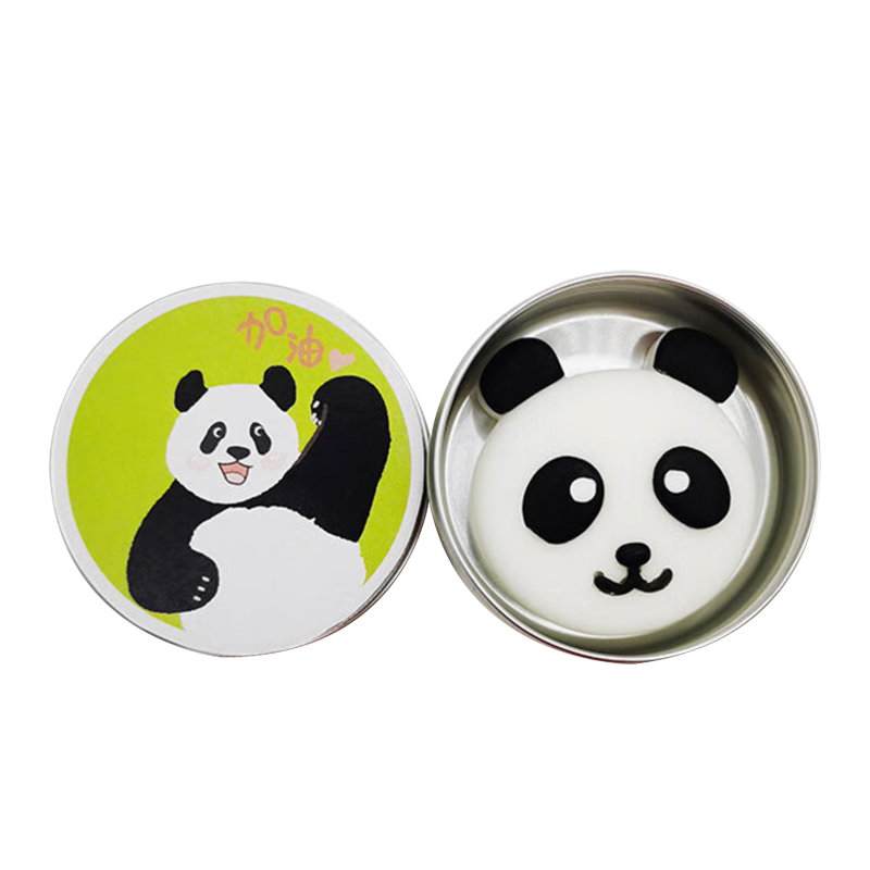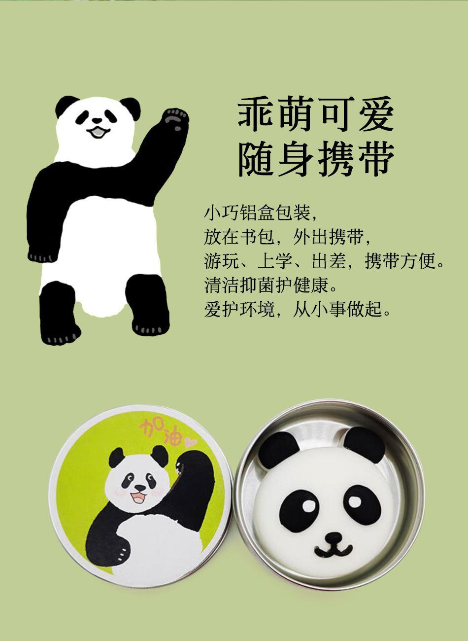 可爱的熊猫香皂,小巧铝盒包装,放在书包,外出携带。 清洁护健康,两种图案可选。