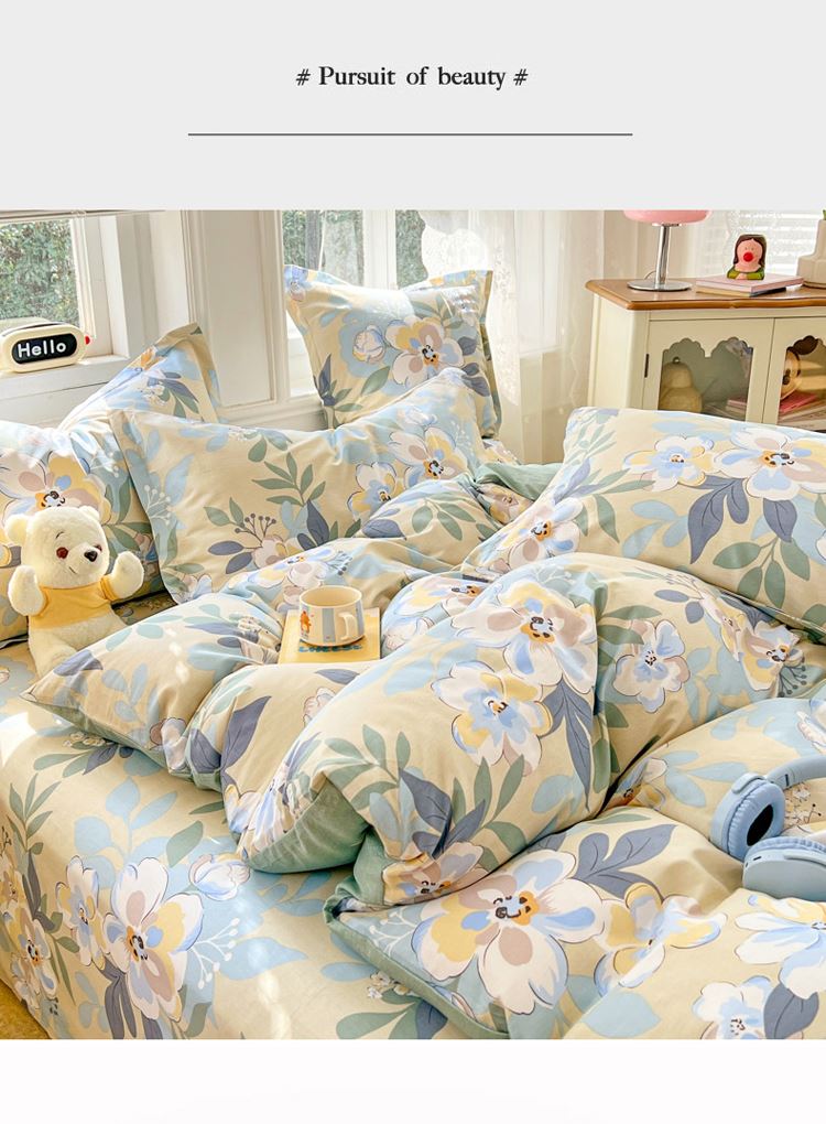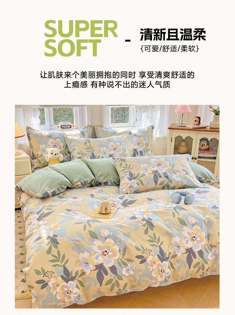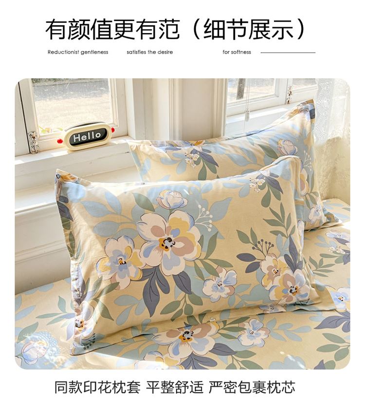 品 名:木棉花 规 格:1.5米/1.8米床通用 被 套:200*230cm 床 单:230*245cm 枕 套:48*74cm*2 重 量:1.86kg 面 料:纯棉 40S