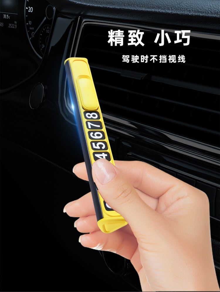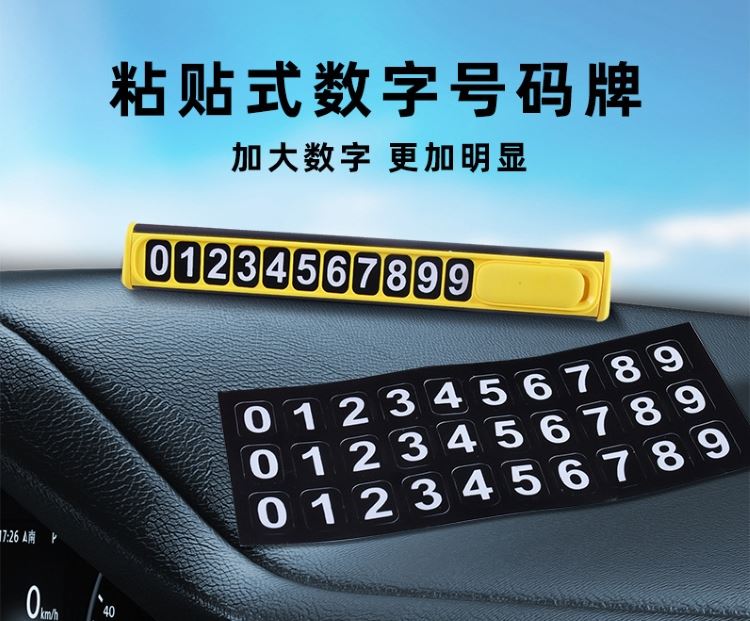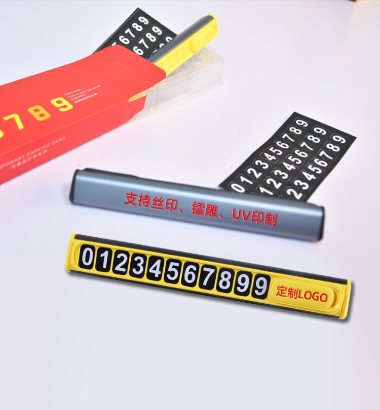 颜 色:黑色 黄色 材 质:铝合金+ABS+数字贴 产品尺寸:12.8*1.8*1.5cm 产品净重:18.5g 产品特点 软磁性号码贴 易吸附 可隐藏号码安全可靠 简约时尚 易安装牢固不脱落 轻松更换号码