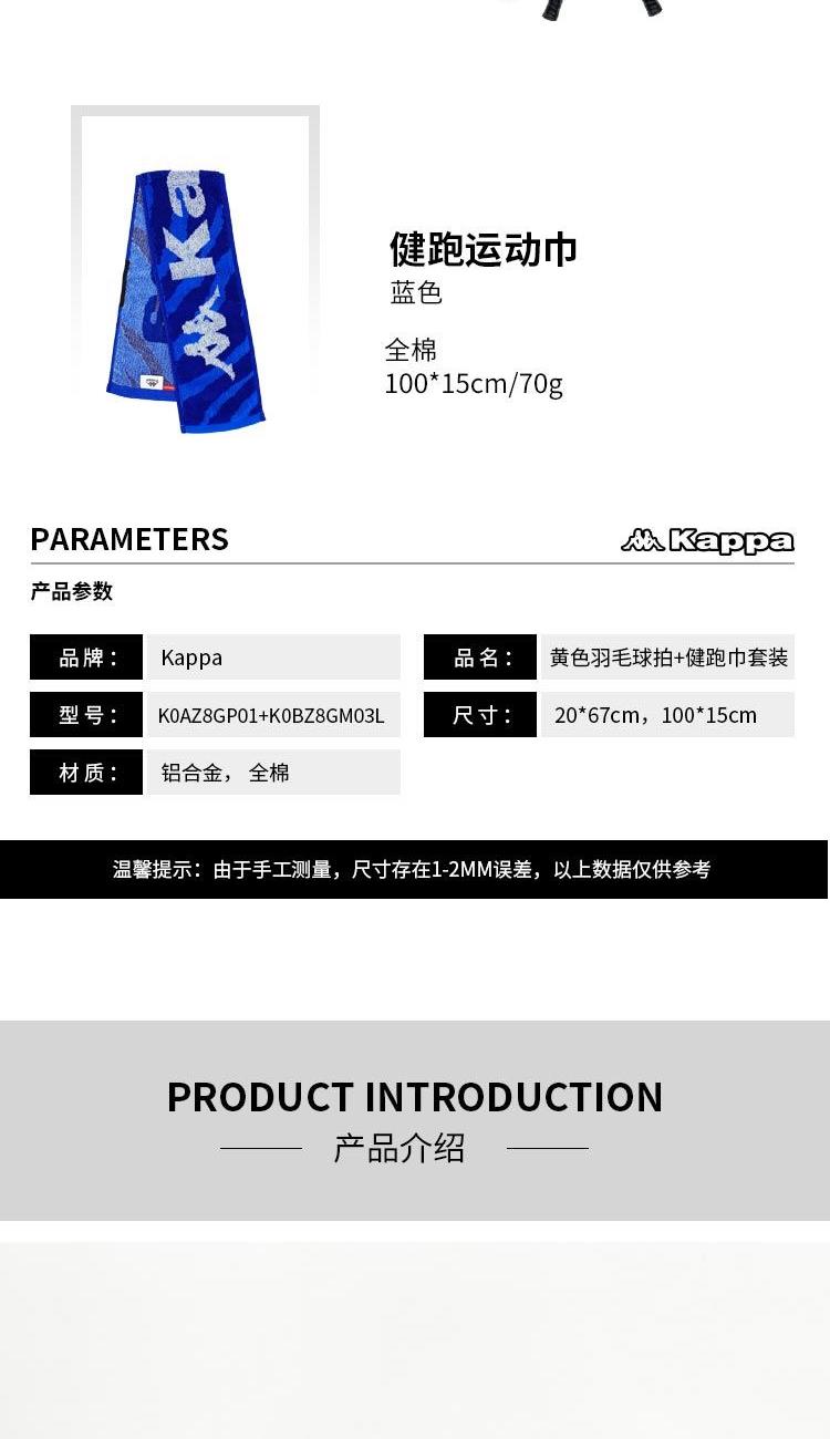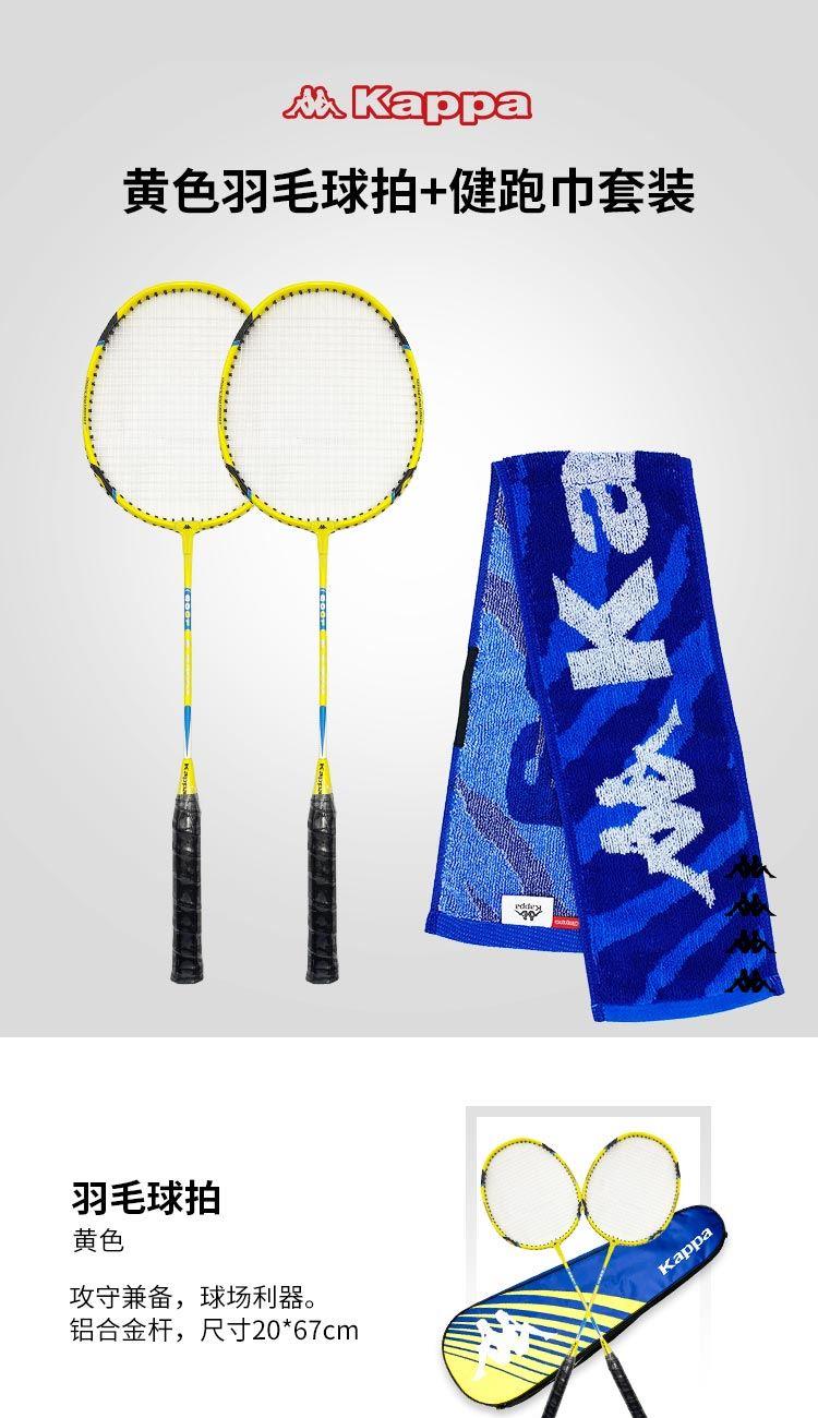 材质:运动巾:全棉 羽毛球拍:铝合金杆 规格: 运动巾: 100*15cm/70g 羽毛球拍:20*67cm