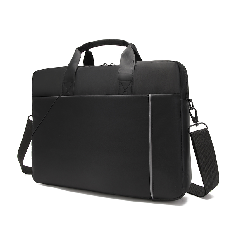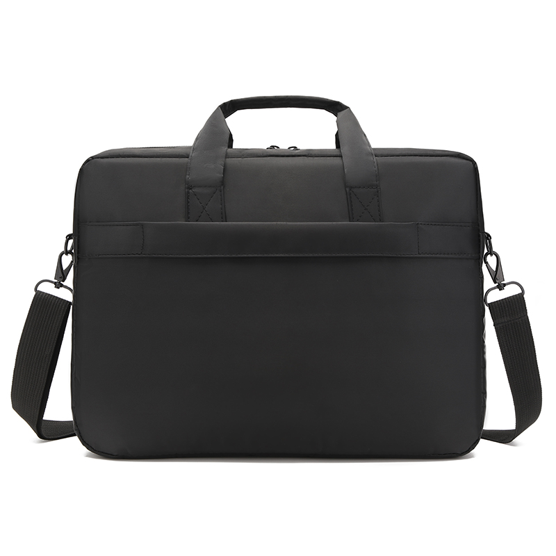 材质:尼龙消光斜纹 颜色:黑色 规格:42*7*32cm 包装方式:PP袋,可选收费彩盒 外箱尺寸:64*44*48cm 采用尼龙消光斜纹,质感好,档次高; 大容量电脑公文包,15.6英寸电脑轻松收纳; 人性化拉杆织带设计,插在拉杆箱上,旅行更方便。 可拆卸单肩背背带,可提可背,双重场景切换; 前置收纳袋,可收纳日常零碎物品。