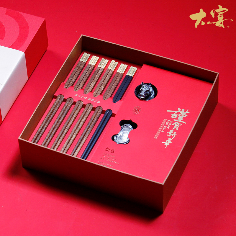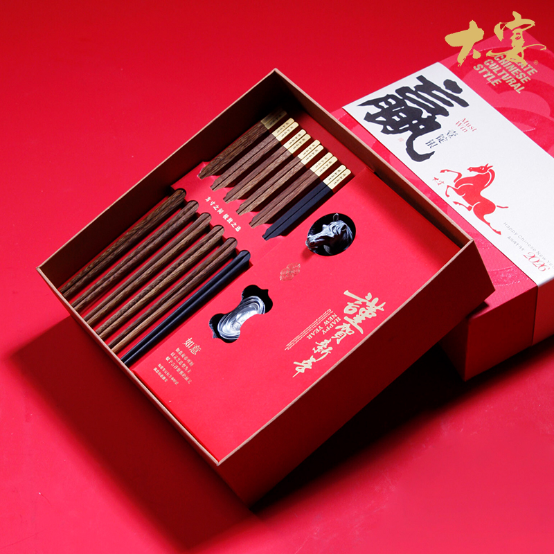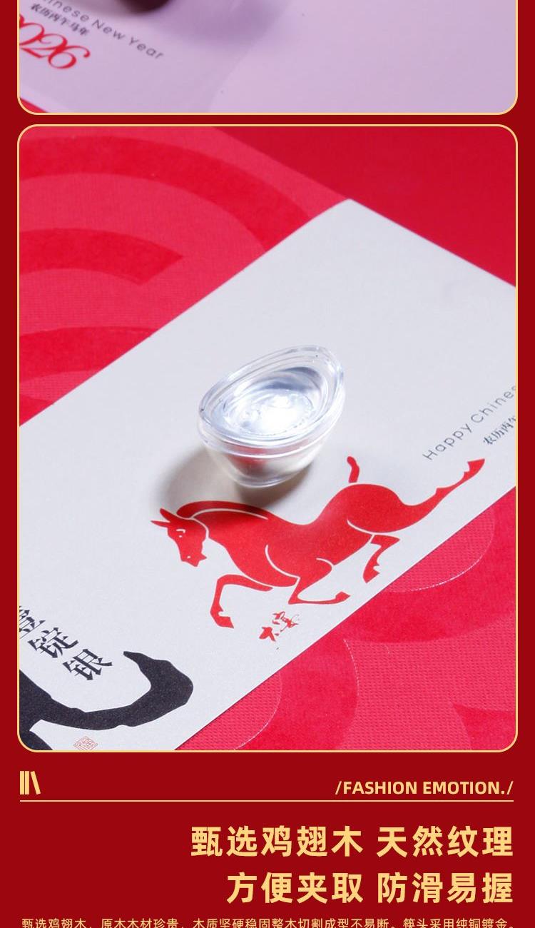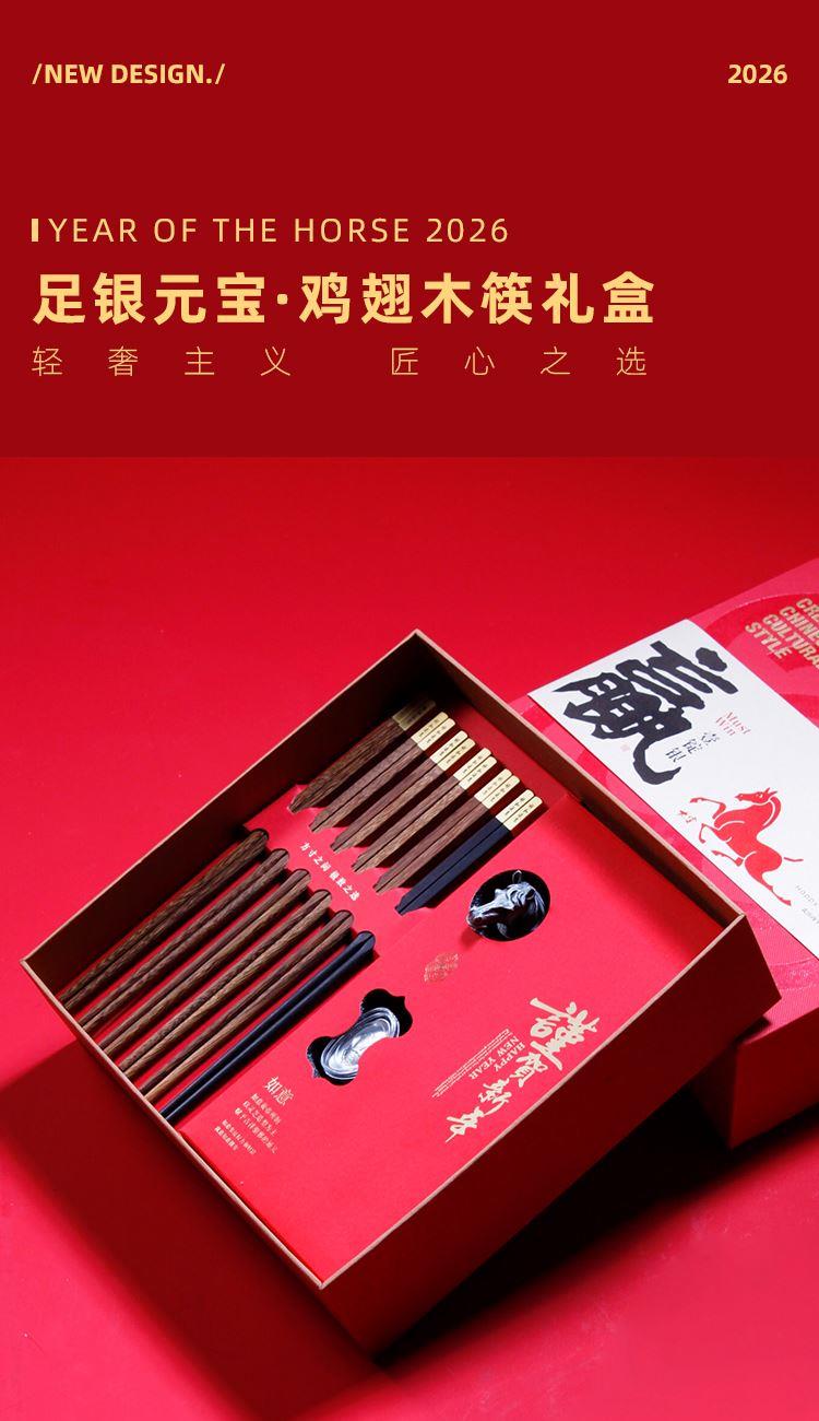 鸡翅木x5 黑檀木*1 酒杯x1 默认生肖马 999足银银元宝(10克)x1 生肖画面可以选择 999纯银元宝壹锭银 寓意一定赢 寓意美好 生肖筷礼 新年筷乐创意有特色 免费定制logo 不限数量 可以私人定制