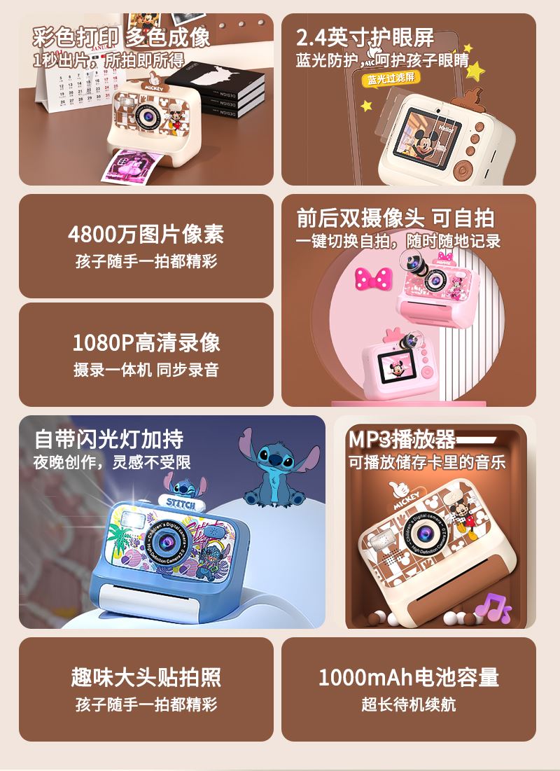 迪士尼PC05潮酷系列儿童拍立得相机