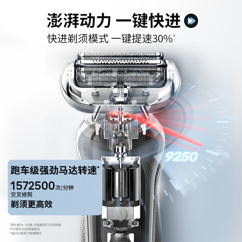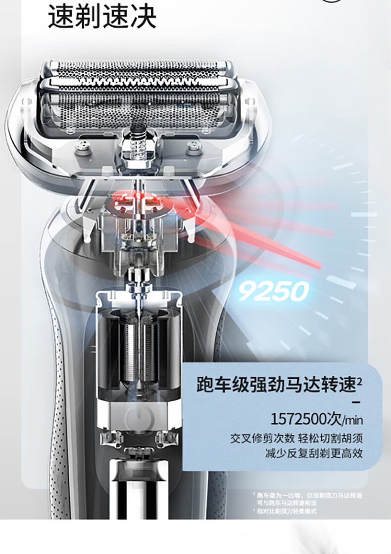 商品毛重:400.00g 商品产地:德国 刀头数量:3个 清洗方式:全身水洗,刀头水洗 续航时间:45-60分钟 充电时间:1小时快充 产品尺寸:长117mm;宽98mm;高231mm